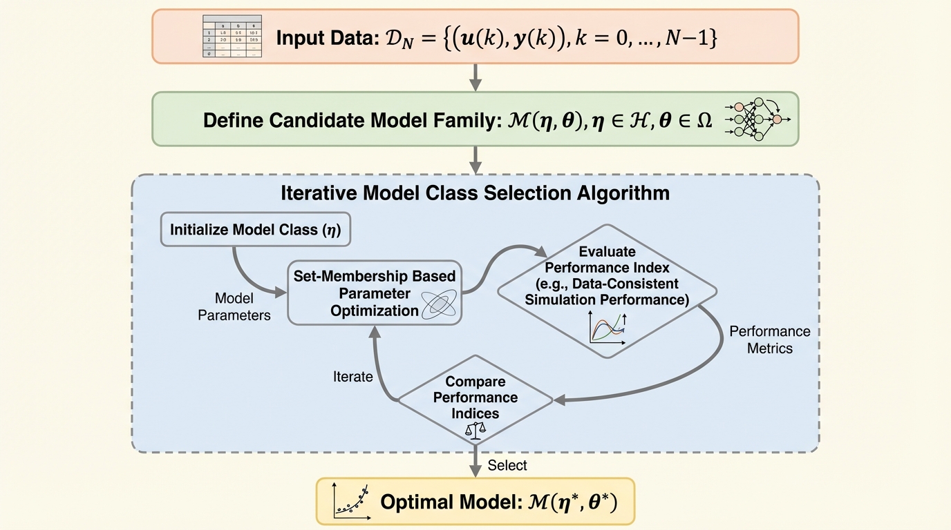 本研究では、非線形動的システムの同定において、モデルクラスの選択とパラメータ学習を統合的に行う、データ一貫性に基づいた新しいヒューリスティックな手順を提案している。この手法の核心は、セットメンバーシップ(SM)同定の原理を導入した点にある。セットメンバーシップ法は、データの不確実性が既知の範囲内に収まっているという仮定に基づき、その範囲内でデータと矛盾しない全てのパラメータの集合を特定するアプローチである。…