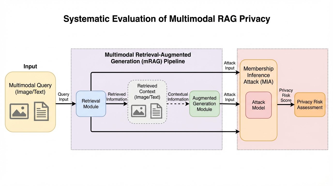 本研究では、画像中心のmRAGシステムにおけるプライバシーリスクを体系的に評価するための新しいフレームワークを提案し、2つの主要な攻撃手法を定義してその有効性を検証しました。第一の攻撃はメンバーシップ推論攻撃(MIA)であり、これは攻撃者が持っている特定の画像がmRAGのプライベートデータベースに含まれているかどうかを判定することを目的とします。…