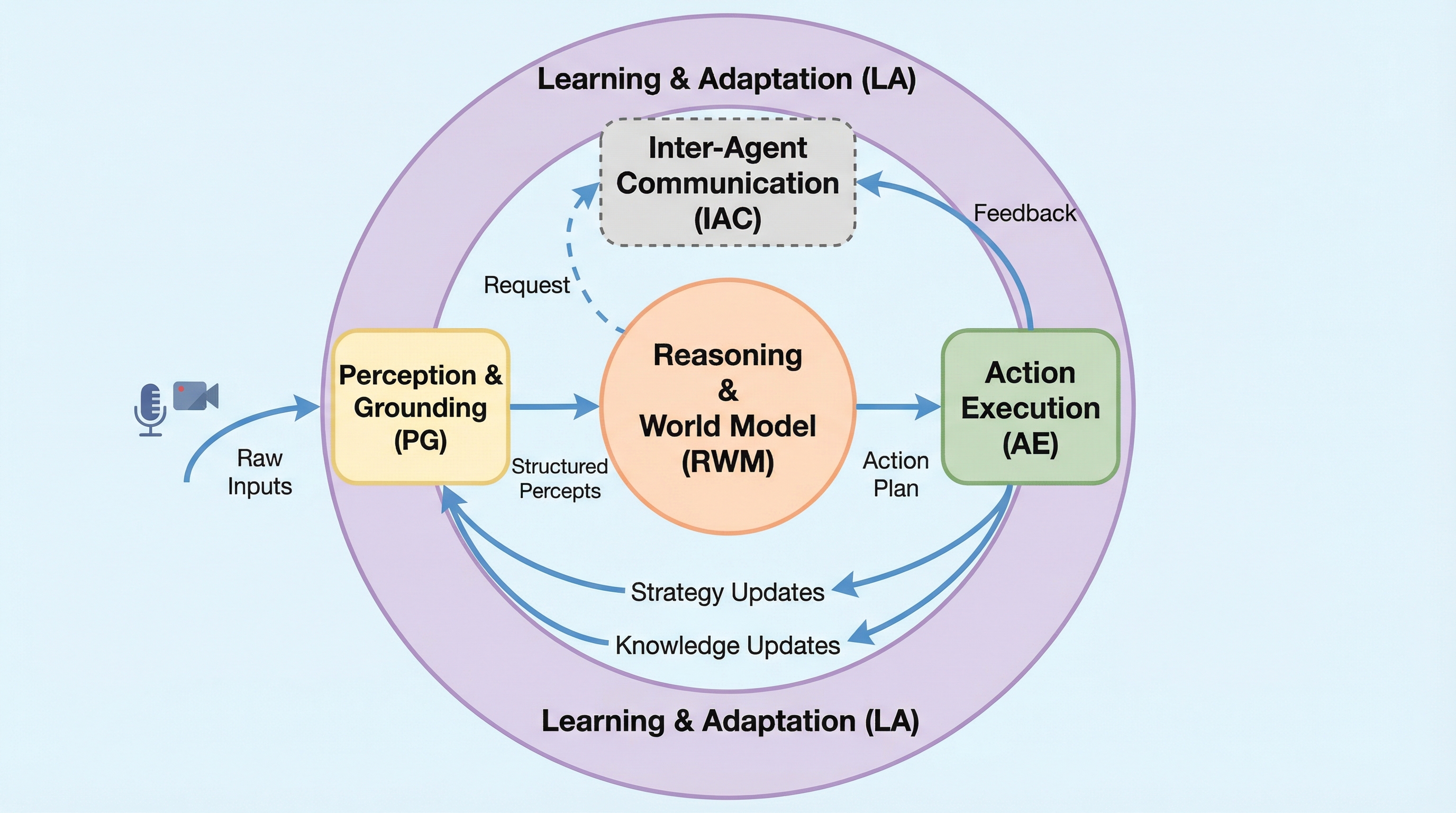 基盤モデルを用いたエージェントAIは、ハルシネーションや推論能力の不足、そして場当たり的なシステム設計による信頼性の低さが大きな課題となっており、既存の設計パターンも理論的根拠に欠け実装が困難な状況にあります。 本研究はシステム理論に基づき、エージェントを「推論と世界モデル」「知覚と接地」「実行」「学習と適応」「エージェント間通信」という5つの相互作用するサブシステムに分解する、新しい階層型アーキテクチャを提案しました。 この枠組みから導出された12の設計パターン(ADP)は、認知、実行、適応などの課題に対する再利用可能な構造的解決策を提供し、ReActフレームワークの欠陥を修正するケーススタディを通じてその実用性と標準化への貢献が示されました。