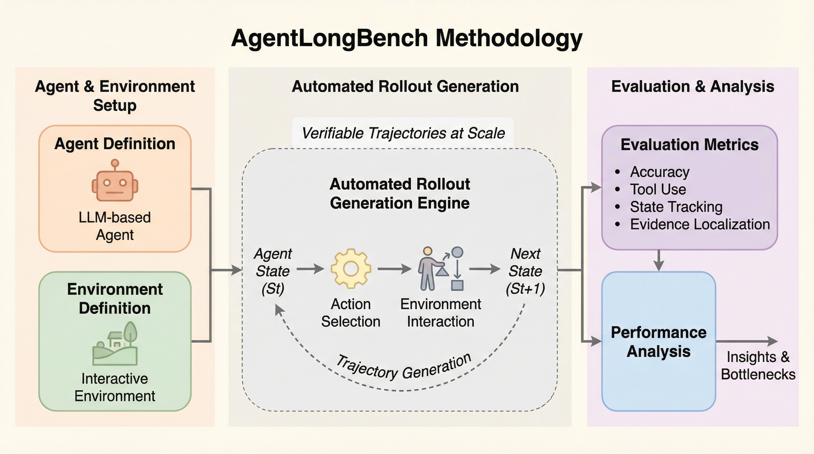 本研究では、環境ロールアウトのシミュレーションを通じてエージェントを評価する、制御可能で拡張性の高いベンチマーク「AgentLongBench」を提案しました。このフレームワークの最大の特徴は、水平思考パズル(Lateral Thinking Puzzles)を基盤としている点にあります。水平思考パズルは、エージェントが論理的な制約を満たしながら、一連の反復的な質問を通じて隠された状態を再構築することを要求します。このプロセスは、自律型エージェントが行う複雑な調査ワークフローの厳密な代理指標として機能します。…