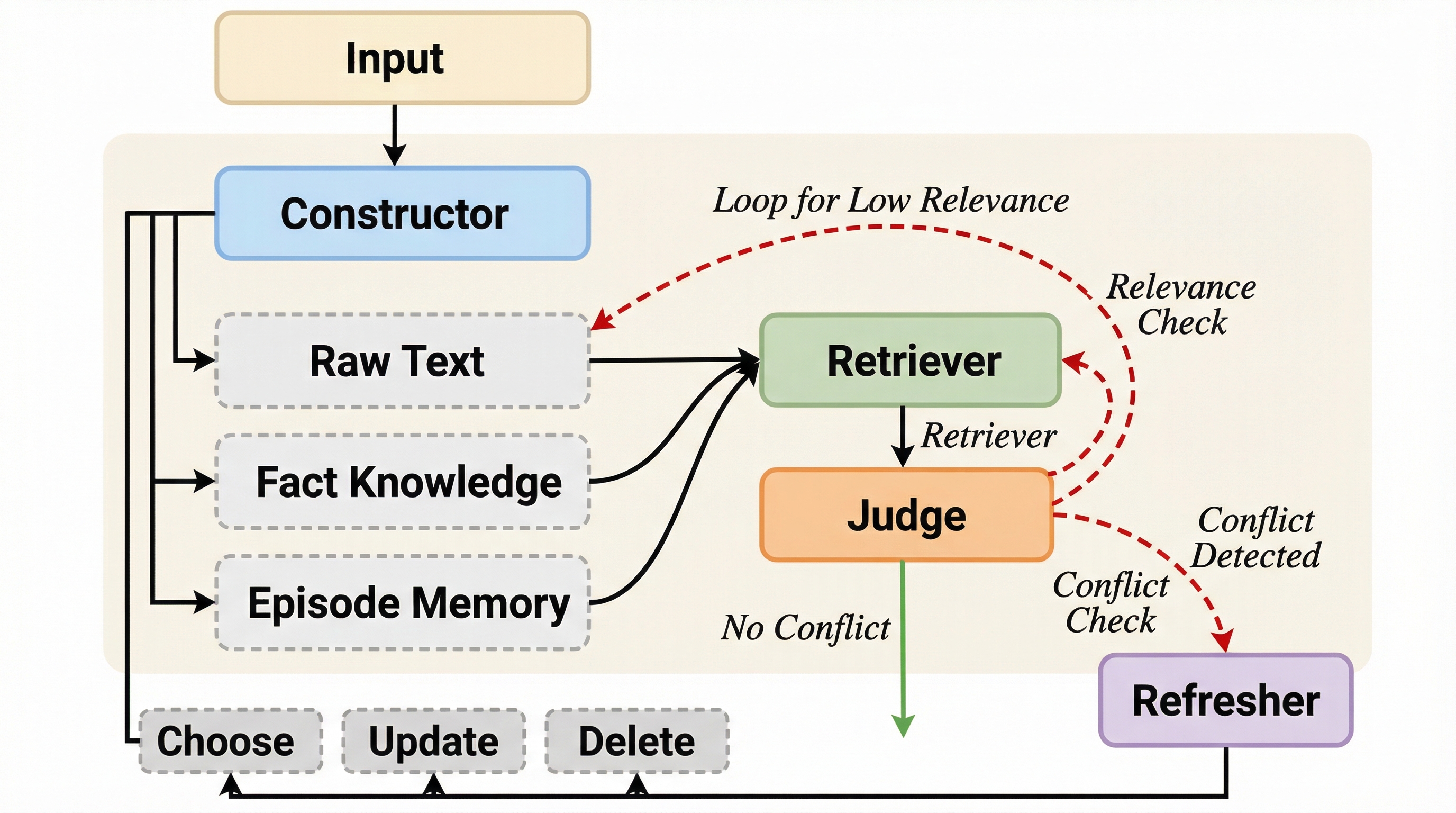本論文では、これらの課題を解決するために、マルチエージェントの協調によってメモリのライフサイクルを自律的に管理する「AMA(Adaptive Memory via Multi-Agent Collaboration)」という革新的なフレームワークを提案しています。AMAの最大の特徴は、メモリの構築、検索、検証、更新という一連のプロセスを、それぞれ独立した専門的な役割を持つ4つのエージェント(Constructor、Retriever、Judge、Refresher)に分解して担当させている点にあります。この設計により、単一のエージェントでは処理しきれなかった「きめ細かな制御」と「論理的な整合性の維持」を同時に実現することが可能になりました。…