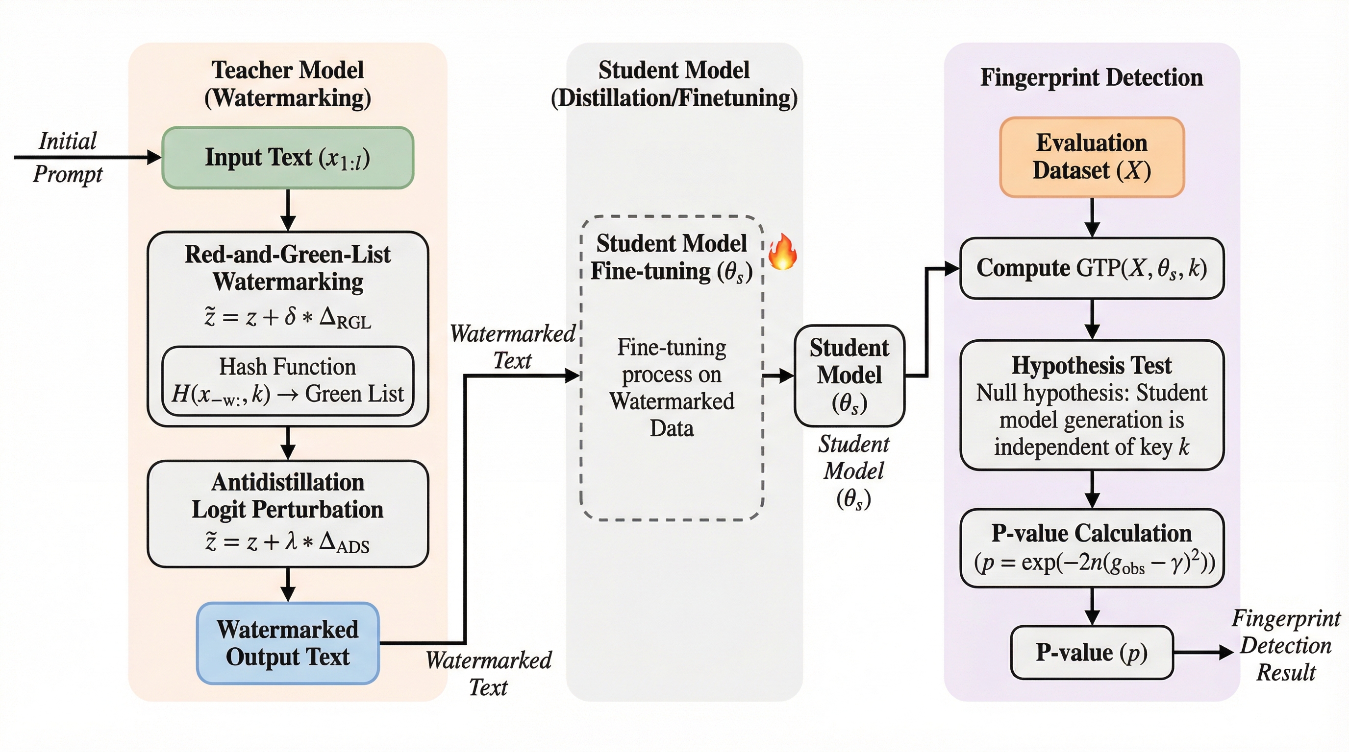 最先端の大規模言語モデル(LLM)の開発には、膨大な計算資源と莫大な投資が必要であり、これを利用できる機関は極めて限られています。その一方で、公開された高性能なモデルの出力を学習データとして利用し、低コストでその能力を模倣する「モデル蒸留」が大きな課題となっています。モデルの所有者は、自社の知的財産を守るために、第三者の生徒モデルが自社モデルの出力を微調整に使用したかどうかを確実に判断できる技術を必要としています。既存のフィンガープリンティング技術やウォーターマーク手法は、特定のトークン群(グリーンリスト)を選択する確率を静的に高めるヒューリスティックな摂動に依存してきました。しかし、これらの単純な手法は、生成されるテキストの品質と検知能力の間に厳しいトレードオフを生じさせます。検知感度を高めようとすると、モデル本来の性能や出力の自然さが著しく損なわれるという問題がありました。 また、従来のウォーターマークは、生徒モデルが学習プロセスを通じてどのように信号を内部パラメータに取り込むかという動的な側面を考慮していませんでした。…