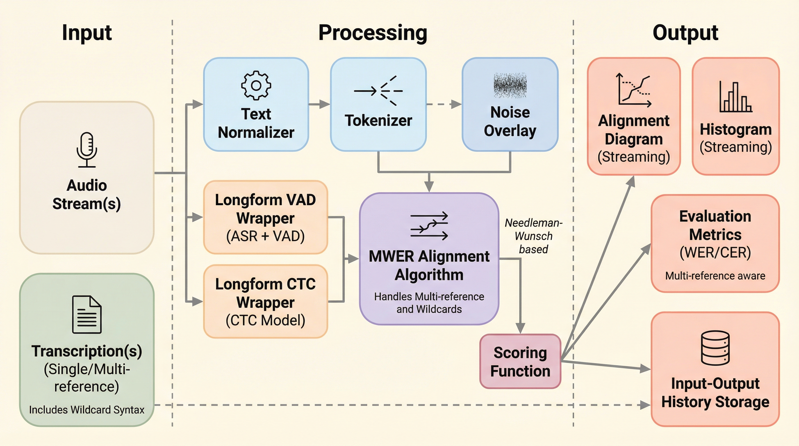 音声認識(ASR)の評価において、表記揺れや聞き取り困難な箇所を柔軟に扱うための新アルゴリズム「MWER」と、包括的な評価ライブラリ「asr_eval」が提案されました。 MWERは、複数の正解候補を波括弧で記述するマルチリファレンス構文、任意の挿入を許容するワイルドカード、ハルシネーションによる指標の歪みを抑える緩和ペナルティを導入し、より人間に近い評価を実現します。 ロシア語の長尺データセットを用いた検証では、従来のテキスト正規化に頼る評価が、モデルが特定の表記規則に過剰適合することで生じる「指標の錯覚」を引き起こし、真の性能向上を誤認させるリスクがあることが示されました。