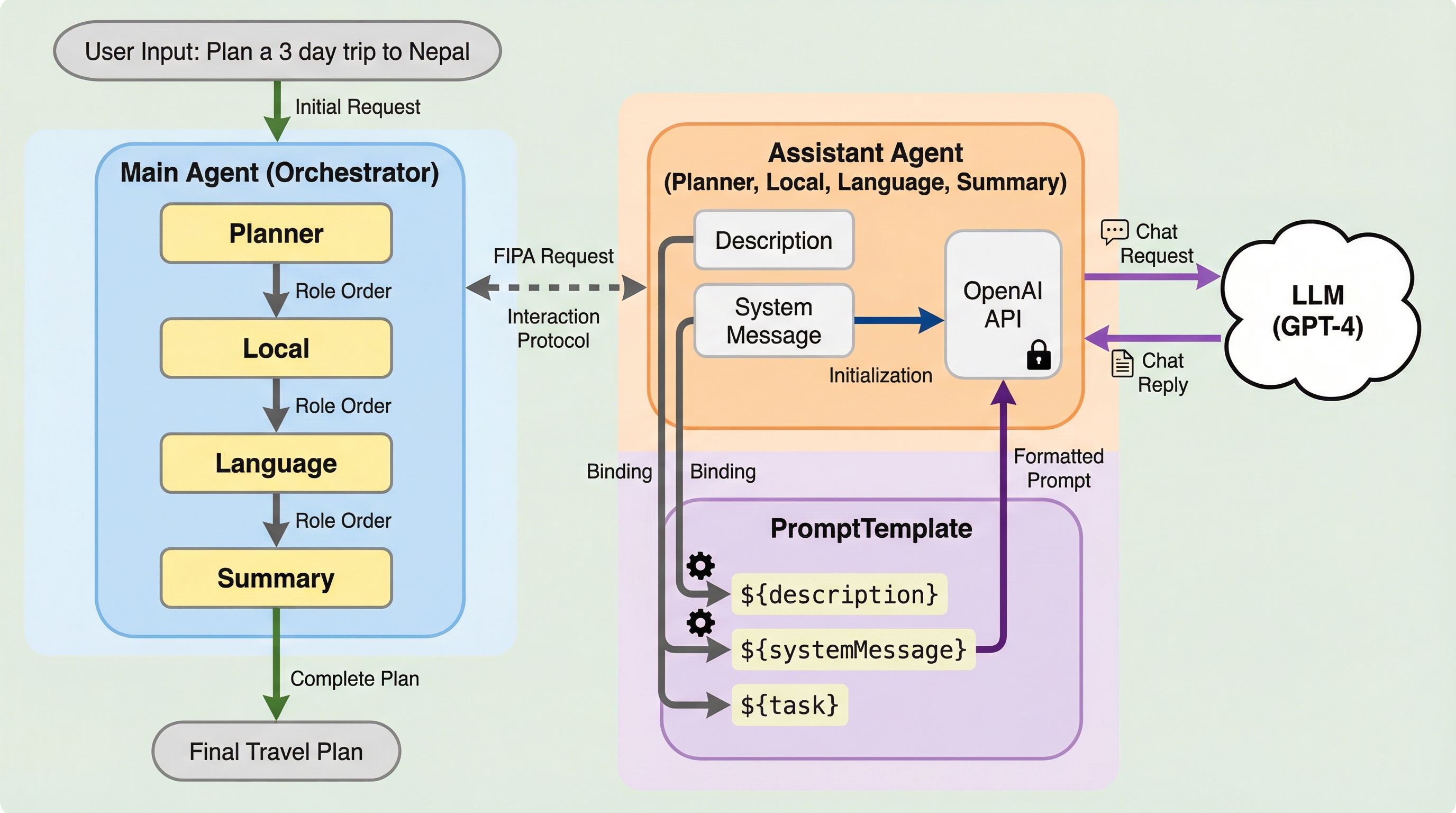 本研究の核心的な提案は、ASTRAエージェントプログラムにおいてLLMの機能を直接利用可能にする「astra-langchain4j」ライブラリの開発である。このライブラリは、JavaでLLMベースのシステムを構築するためのオープンソースライブラリであるLangChain4jの上に構築されており、ASTRAのモジュールシステムを通じてシームレスに統合されている。具体的には、LLMの呼び出しを実行する機能、プロンプトテンプレートの定義と再利用、そしてエージェントの信念ベースを活用した検索拡張生成(RAG)という3つの主要な機能を提供している。…