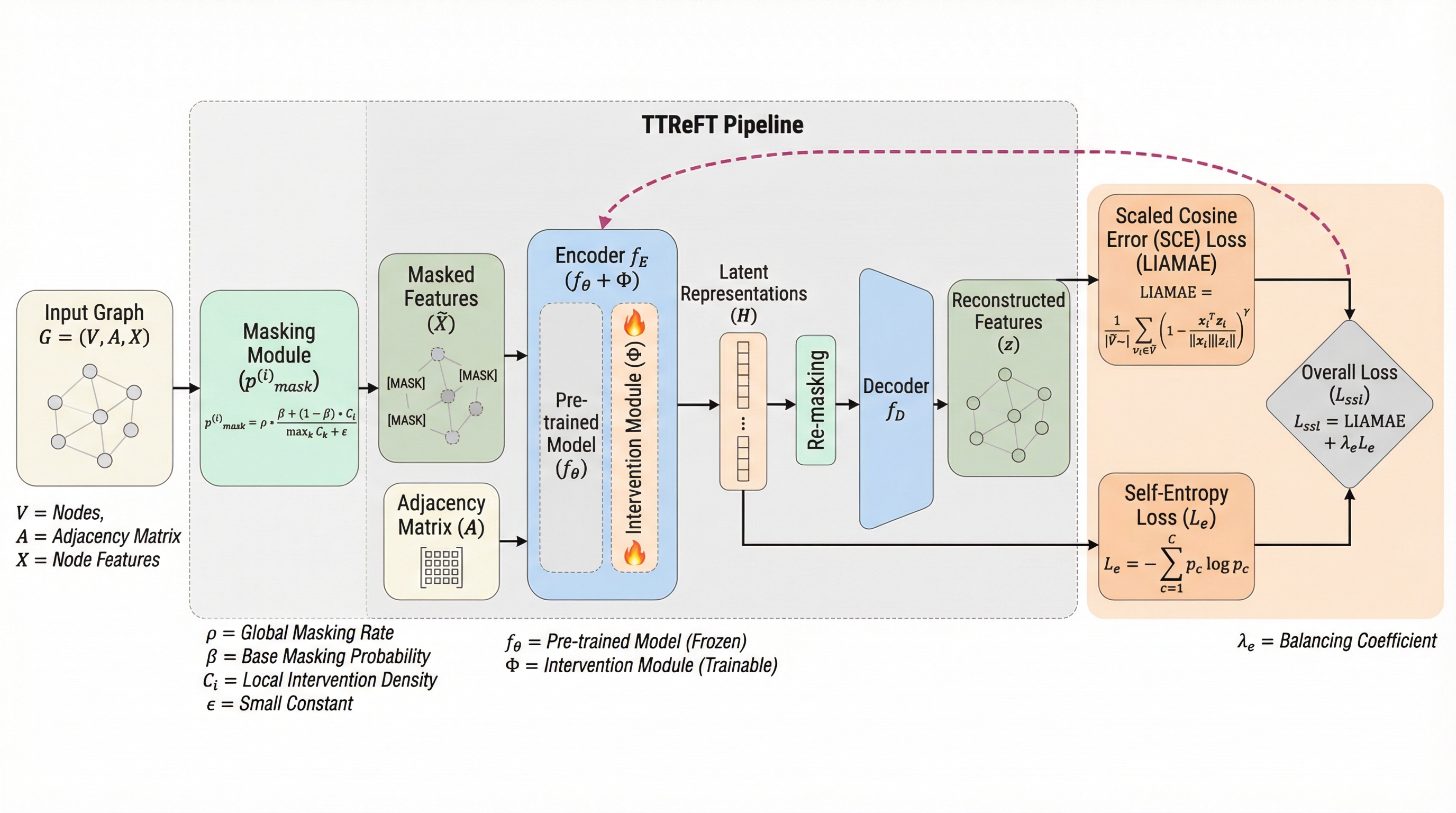 グラフニューラルネットワーク(GNN)が未知のデータ分布に直面した際の性能低下を解決するため、モデルのパラメータを更新せずに潜在的な表現層のみを調整する新しい学習枠組み「TTReFT」が提案されました。 この手法は、予測の不確実性が高いノードを特定して低ランクの介入を行う仕組みと、介入の密度に応じてマスクの確率を動的に変化させる自己教師あり学習タスクを組み合わせることで、従来の手法で課題となっていた学習済み知識の喪失を防ぎます。 5つのデータセットを用いた実験と理論的な解析により、分布の変化が生じる環境下でも高い汎用性能を維持しつつ、計算コストを大幅に削減しながら破滅的忘却を回避できることが実証されました。
