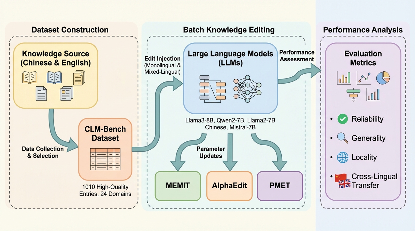 大規模言語モデルの知識編集において、既存の多言語評価枠組みが英語中心の翻訳データに依存し、文化的な固有性や真の知識分布を反映できていないという問題を解決するため、中国語を起点とした文化配慮型の新しいベンチマーク「CLM-Bench」を提案しました。