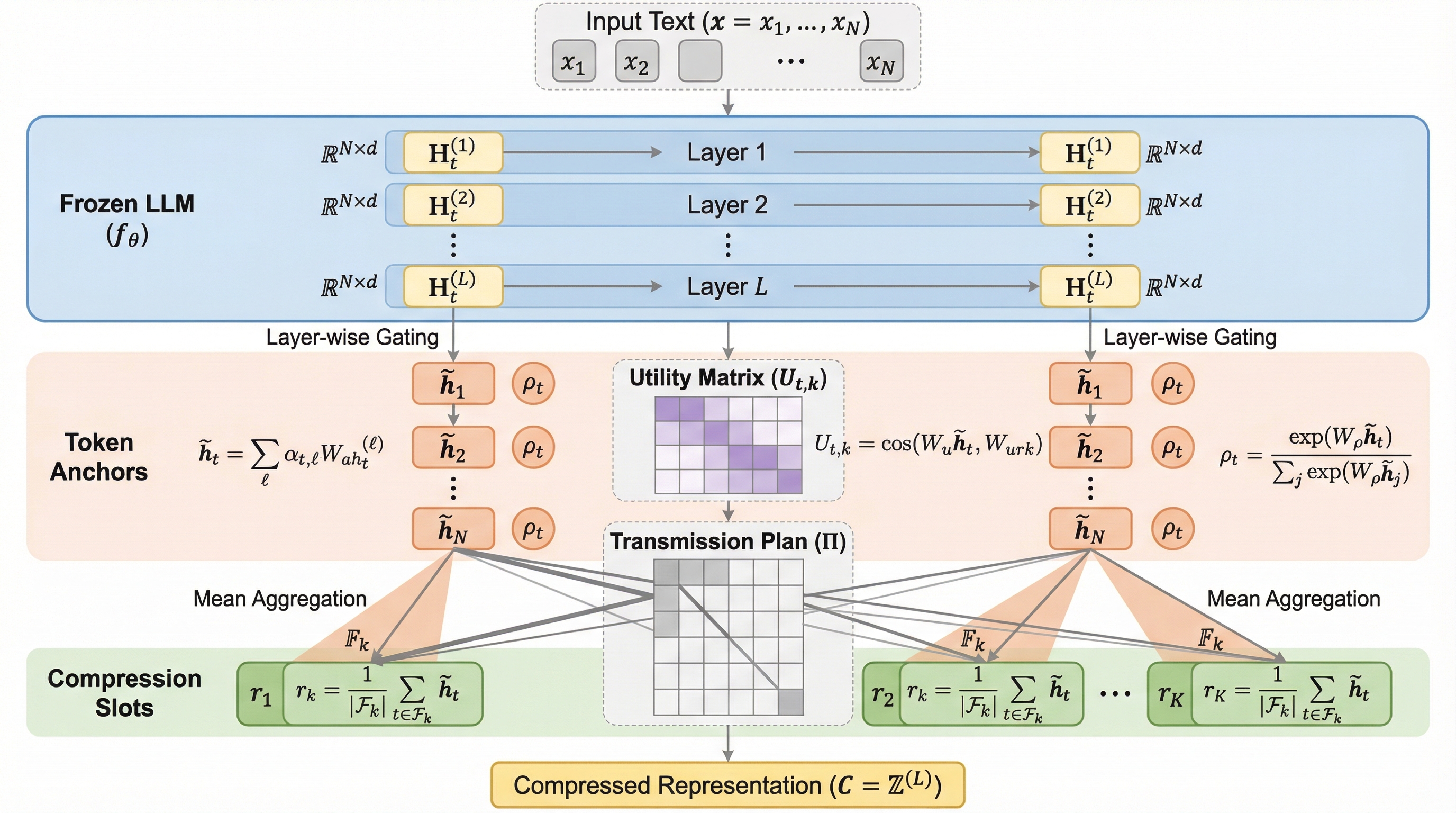 本論文では、従来の「LLM自体を学習可能な圧縮器として使う」というパラダイムを脱却し、固定されたLLMの隠れ状態に対して「明示的な情報伝達(Explicit Information Transmission)」を行う新しいフレームワーク「ComprExIT」を提案しています。この手法の核心は、圧縮プロセスをLLM内部の自己アテンションの動態から完全に切り離し、情報の流れを直接的かつ制御可能な形で設計した点にあります。ComprExITは、LLMの重みを凍結(frozen)した状態で、その内部で生成される多層的な隠れ状態を直接利用します。LLMの各層には、低レベルの語彙的特徴から高レベルのセマンティックな抽象概念まで、多様な情報が含まれているという特性を最大限に活用しています。…