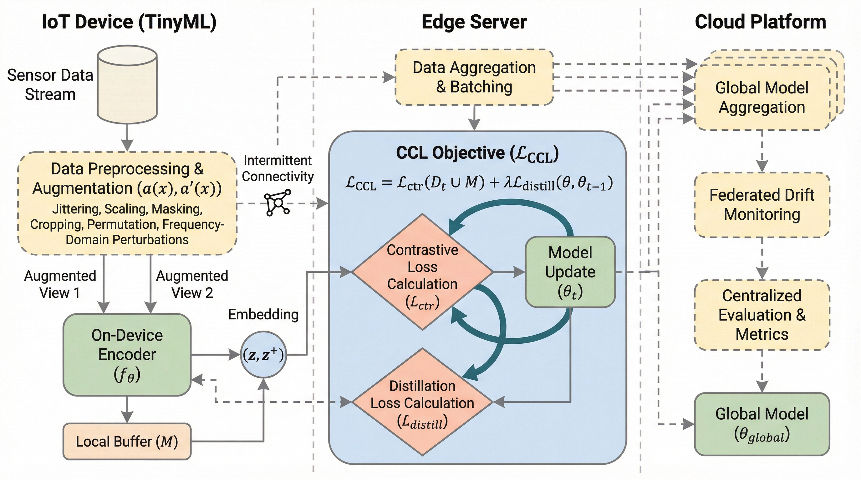 IoTの現場で、学習済みモデルは“いつまで”通用するのでしょうか? 鍵は高性能な一発学習ではなく、変化に追従しつつ忘れにくい「学び方」でした。 この記事では、IoT向けのコントラスト継続学習(CCL)を、設計と運用の両面から読み解きます。