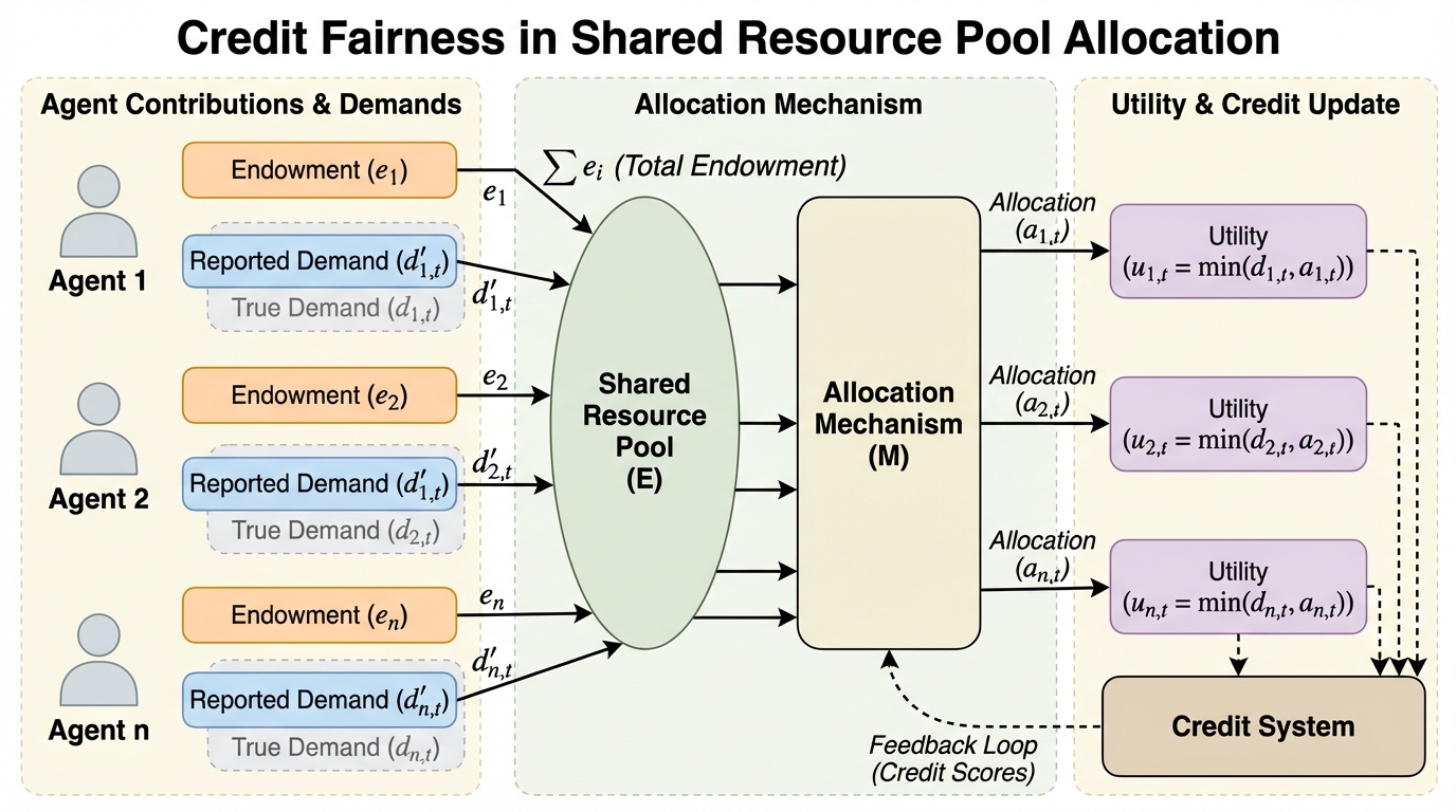 本研究は、計算資源やエネルギーなどの共有リソースを時間経過とともに配分する際、過去にリソースを貸し出したエージェントが将来優先的に報われることを保証する「クレジット公平性」という新しい概念を提案した。