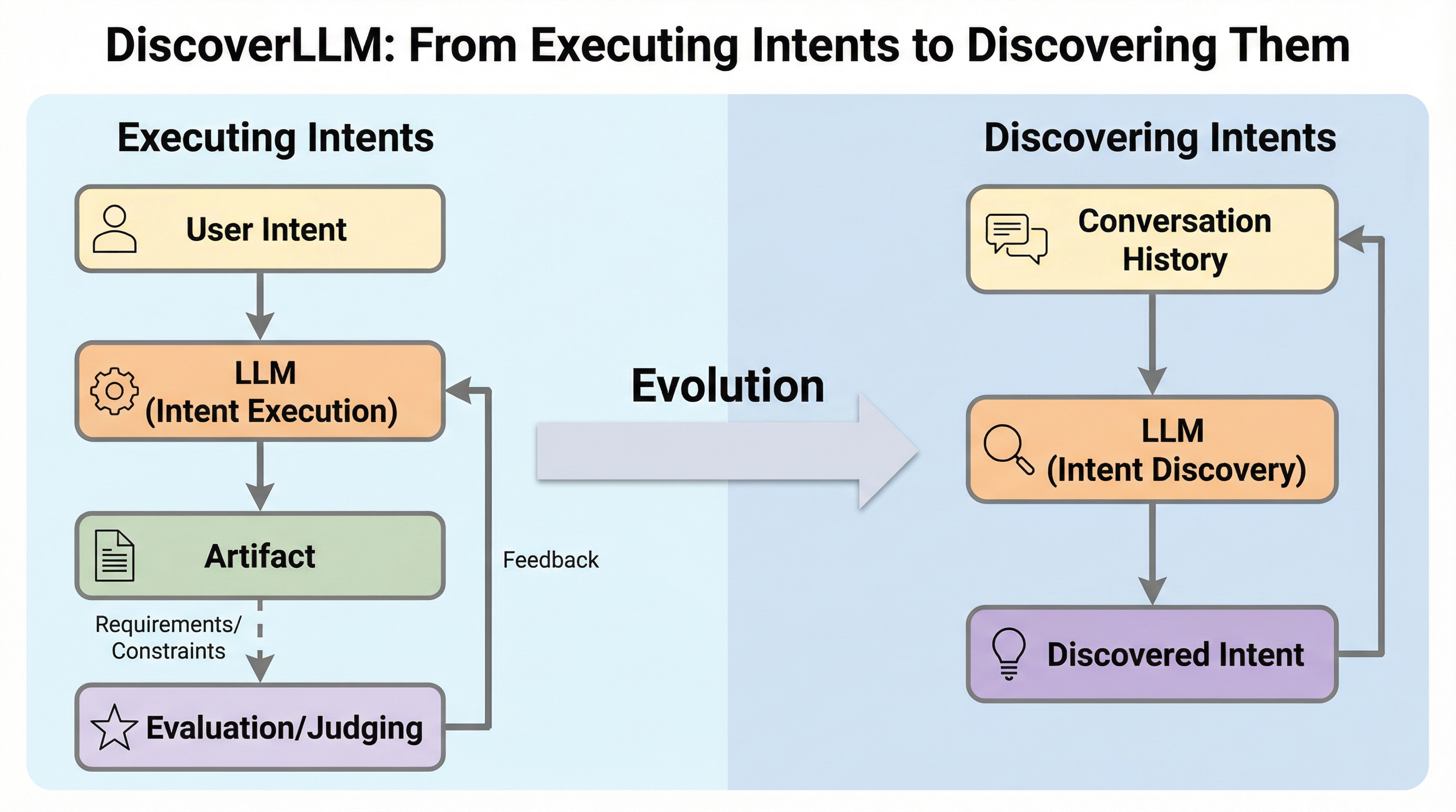現在の大規模言語モデルは、複雑な指示に従って高品質な出力を生成する能力に長けていますが、そこには「ユーザーが最初から明確な意図を持っている」という暗黙の前提が存在しています。しかし、現実の創作活動や設計、あるいはオープンエンドな問題解決においては、ユーザー自身が何を求めているのかを正確に把握していない「未形成の意図」を抱えていることが一般的です。例えば、「教訓についての個人的なエッセイを書いてほしい」という曖昧な依頼をするユーザーは、具体的なトーンや構成についての明確な答えを自分の中に持っていない場合があります。このような状況で、モデルが「どのようなトーンを希望しますか?」といった明確化のための質問を繰り返しても、ユーザーは答えに窮してしまい、対話は停滞してしまいます。 従来の対話手法やベンチマークは、ユーザーが既に持っている情報を引き出す「意図の抽出」に焦点を当ててきましたが、意図そのものがまだ形成されていない場合には、このアプローチは無力です。認知科学の研究によれば、人間は可能な解決策を探索し、具体的な試案や成果物を目にすることで初めて、自分の真のニーズを発見していくという「共進化」のプロセスを辿ることが知られています。…