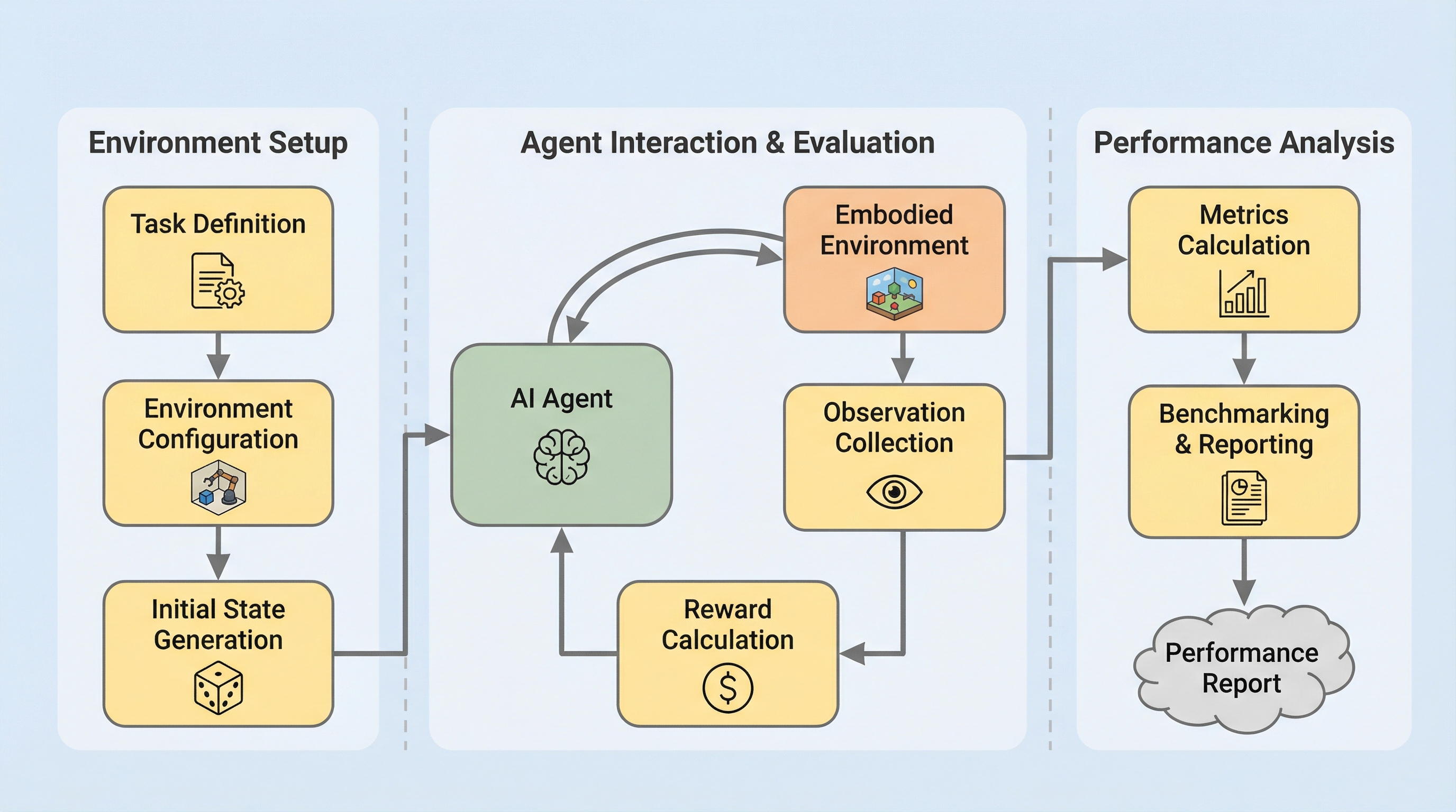 EmboCoach-Benchは、AIエージェントがロボットの制御ポリシーを自律的に設計・最適化する能力を評価するための新しいベンチマークであり、32種類の多様なタスクと4つの主要なシミュレーション基盤を用いて、エンジニアリングの全工程を網羅的に測定します。