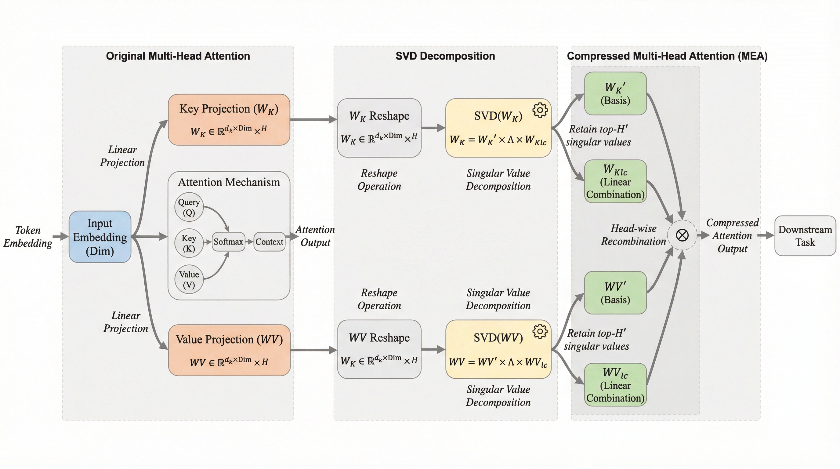 本研究の最大の貢献は、ヘッド間の通信を明示的に強化する新しいアテンション機構である「Multi-head Explicit Attention(MEA)」を提案したことである。MEAの核心となるのは、ヘッドレベル線形結合(HLC)モジュールと呼ばれるコンポーネントである。これは、アテンションの計算が行われる前の段階で、キー(Key)と値(Value)のテンソルに対して、ヘッド次元にわたる学習可能な線形変換を適用するものである。これにより、複数のコンポーネントヘッドから新しい「混合ヘッド」を合成することが可能になり、パラメータを共有しながらもヘッド間の特徴を柔軟に融合させることができる。 さらに、MEAは単なる線形結合の導入にとどまらず、グループ正規化(GroupNorm)を統合することで、学習の安定性を劇的に高めている。…