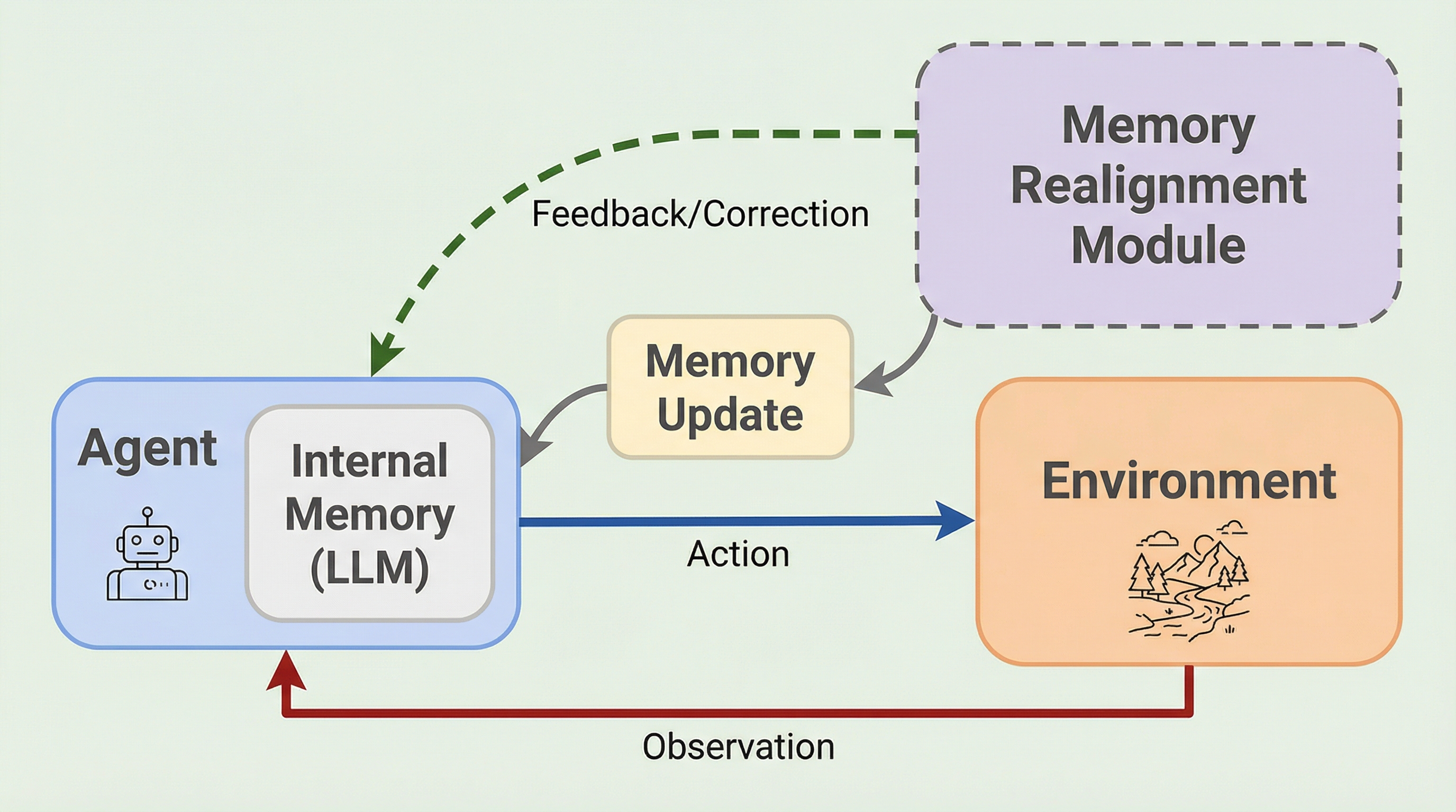大規模言語モデル(LLM)を基盤としたエージェントは、Webの操作から物理的なロボット制御まで、複雑なタスクを自律的に遂行する能力を持ち始めている。これらのエージェントが長期的に活動するためには、過去の経験を記憶として蓄積し、それを将来の計画に役立てることが不可欠である。しかし、現実世界の環境は常に一定ではなく、ウェブサイトのインターフェースが更新されたり、障害物の位置が変わったりといった「環境のドリフト(変化)」が頻繁に発生する。従来のメモリシステムは、一度蓄積した情報を「固定された真実」として扱う傾向があり、環境が変化した際に対応できないという重大な脆弱性を抱えている。この問題の核心は、現実のオープンな環境において、エージェントの記憶が正しいかどうかを判定するための「正解(グランドトゥルース)」を与える評価者が存在しない、あるいはフィードバックが極めて稀であるという点にある。 既存の手法は、主に二つのアプローチでこの問題に対処しようとしてきた。一つは、LLMの高度な推論能力を利用して自己反省(リフレクション)を行い、記憶の矛盾を修正させる方法である。…