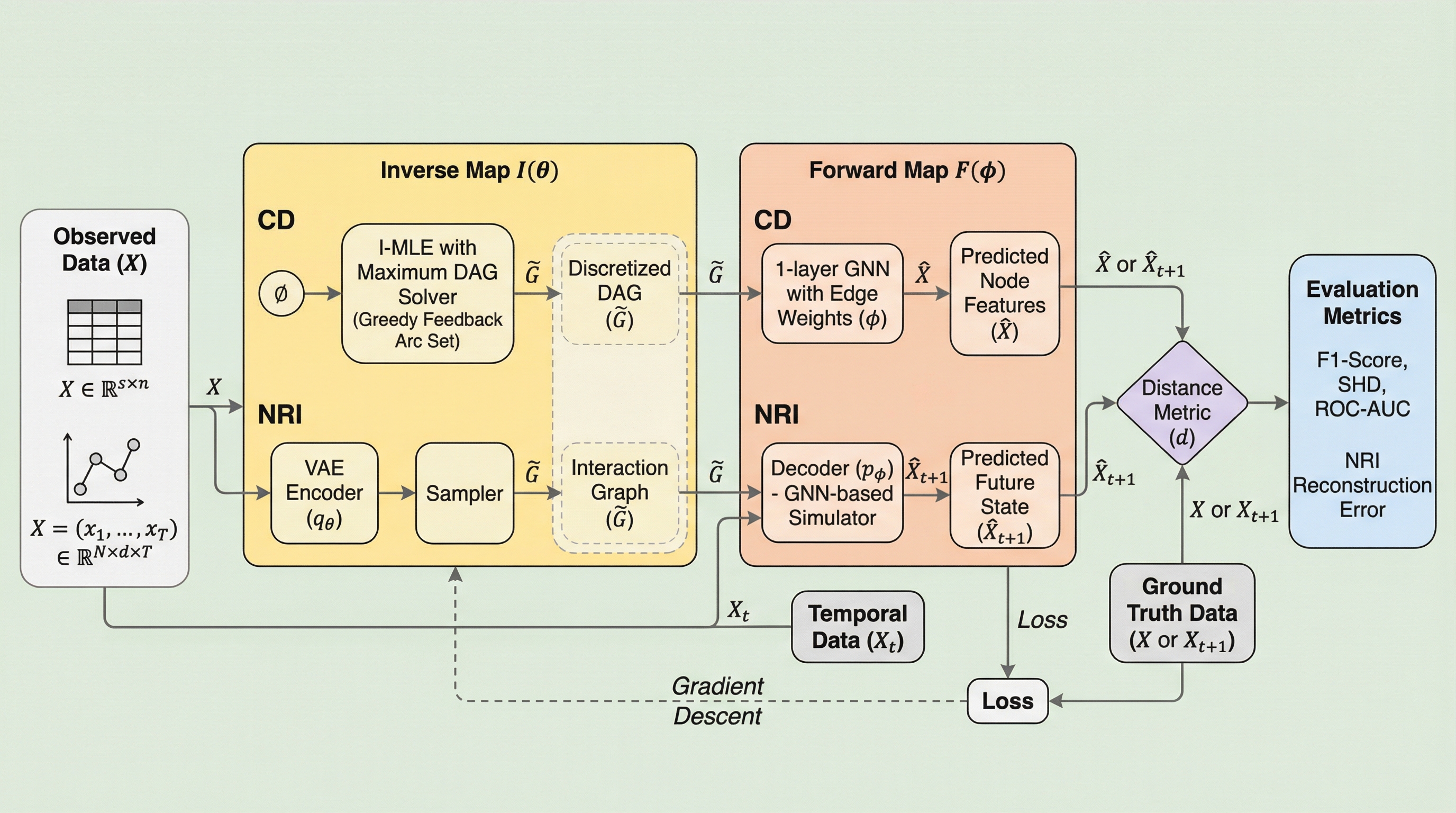 GraIPは、構造発見や因果探索、組み合わせ最適化といった多様なグラフ学習タスクを「逆問題」として統一的に定義し、観測データから潜在的なグラフ構造を復元することを目指す新しい概念フレームワークである。この枠組みは、ニューラルネットワークを用いた逆写像と順写像を組み合わせることで、従来は個別のタスクごとに開発されていた手法に共通の理論的基盤を提供し、異なる領域間での技術の相互利用を促進する。具体的には、メッセージパッシングやネットワーク動態などの順方向のプロセスを反転させることでグラフ構造を推定し、因果探索や遺伝子調節ネットワークの推論、組み合わせ最適化といった幅広い応用分野において、一貫した評価と手法の比較を可能にするベンチマークを提供する。
