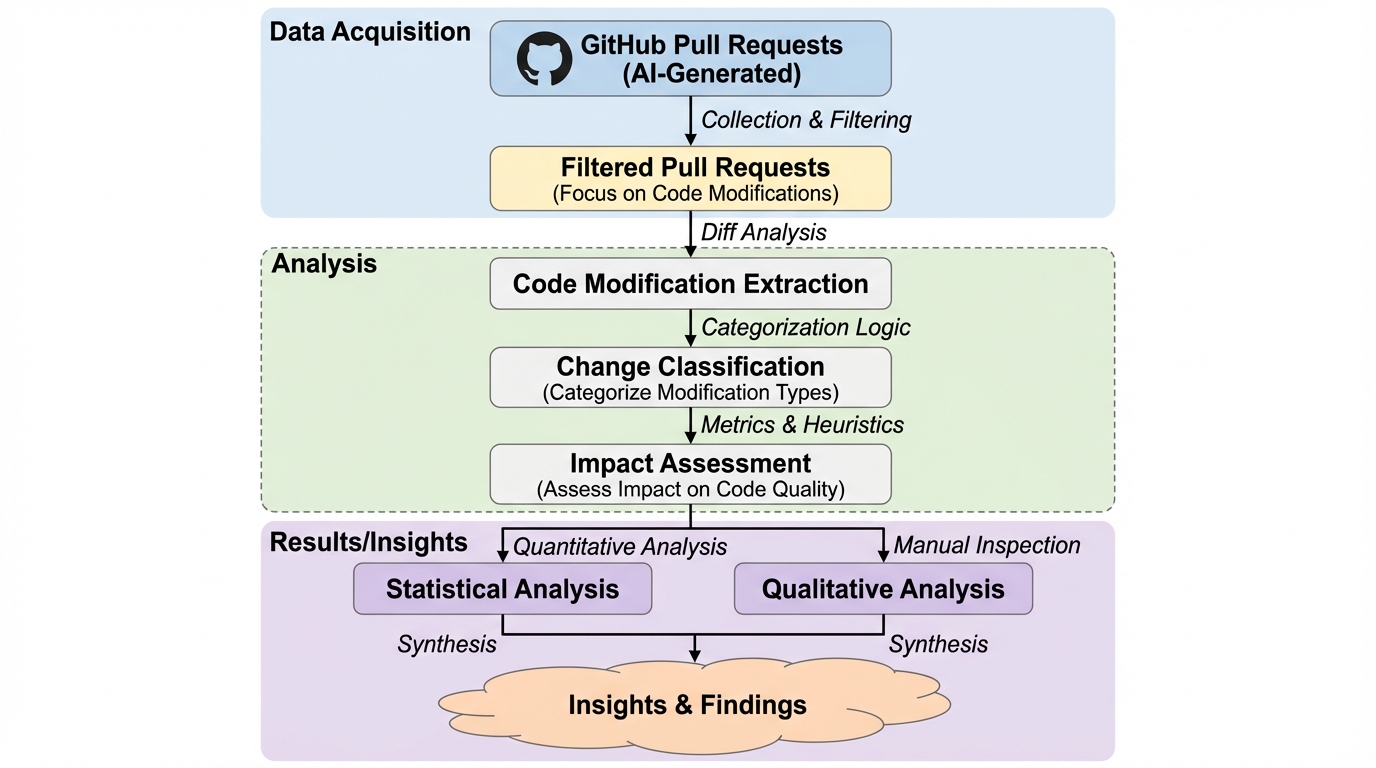 現代のソフトウェア開発において、AIコーディングエージェントは単なる補助ツールを超え、自律的な寄与者としての地位を確立しつつあります。GitHub Copilot、OpenAI Codex、Claude Code、Cursor、Devinといった高度なツールは、バグの修正や新機能の実装を自ら行い、プルリクエストを提出する能力を備えています。このような変化は「ソフトウェア工学3.0」への移行を象徴する重要なステップですが、エージェントが生成したプルリクエストが、熟練した人間による貢献とどのように異なるのかについては、これまで大規模な実証的証拠が不足していました。 特に、エージェントがソースコードをどのように構造的に変更し、その変更内容を自然言語でどのように説明しているのかを理解することは、開発ワークフローにおける信頼性や保守性を評価する上で極めて重要です。既存の研究の多くは、開発者がAIの提案をどのように受け入れるかや、生産性がどれほど向上するかといった点に焦点を当てており、自律的なAIエージェントが作成したプルリクエストそのものを大規模に分析した例は限られていました。…