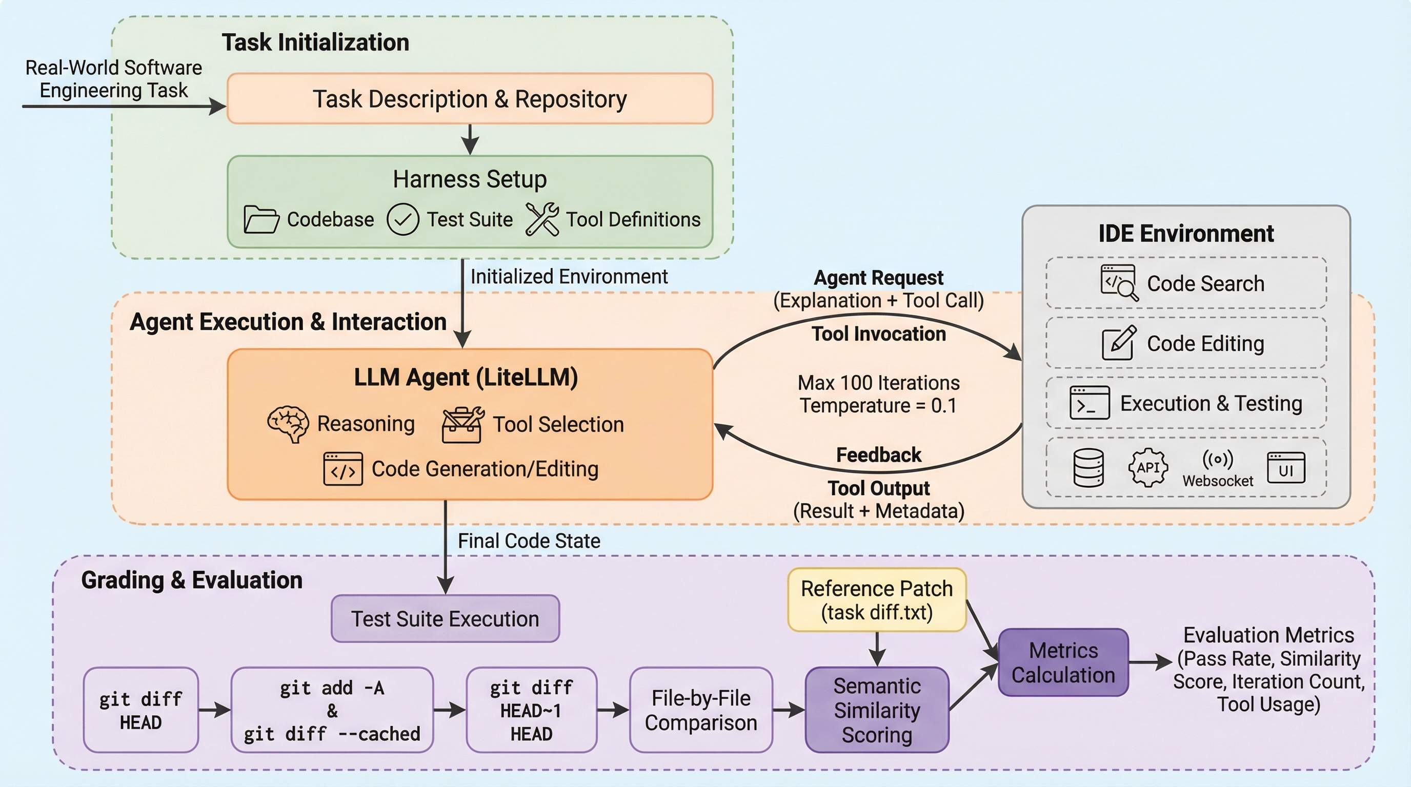 近年、CursorやGitHub Copilotといったエージェント機能を備えたIDEの普及により、ソフトウェア開発のワークフローは劇的に変化している。2025年7月時点でGitHub Copilotの利用者は2,000万人を超え、Cursorの有料顧客も2025年11月までに36万人を突破した。開発者はこれらのツールを日常的なタスクに統合し、コードの反復作業を減らして生産性を向上させている。しかし、既存のLLM評価ベンチマークには、実際の開発者が直面するデバッグ、リファクタリング、機能開発、フルスタックのワークフローを、ツール呼び出しを通じて厳密にテストできるものが存在しなかった。 例えば、既存のSWE-BenchはGitHubのIssueやプルリクエストを利用しているが、モデルにIDE環境へのアクセスを許可しておらず、静的なコンテキスト取得が性能のボトルネックとなるシングルショットのパラダイムで評価を行っている。また、Terminal-Benchはターミナル操作の評価には優れているが、コードベースのインデックス作成やIDEレベルのナビゲーションといった、より高次のIDEネイティブな振る舞いを測定することはできない。…