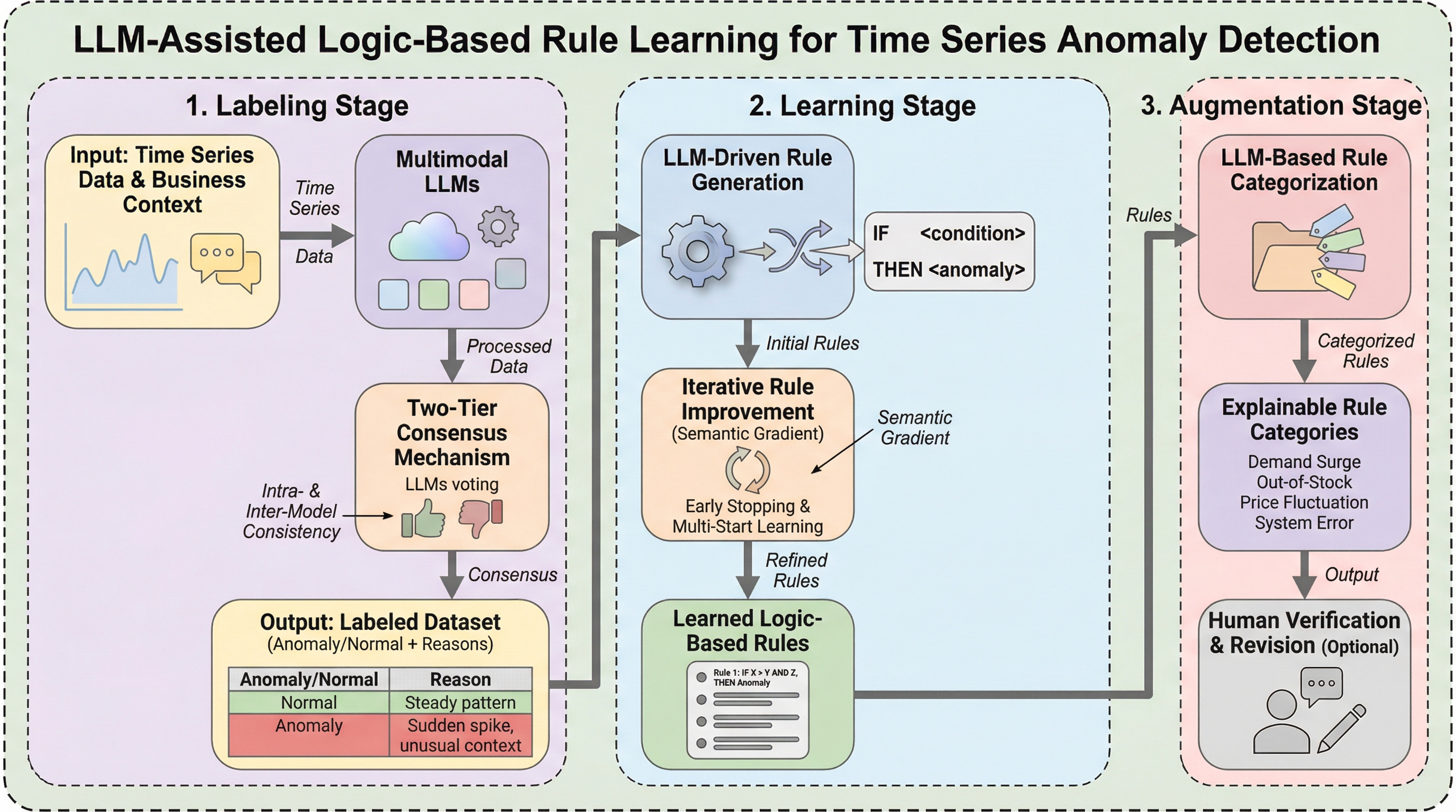 アマゾンのサプライチェーンにおける膨大な製品数の異常検知を効率化するため、人間の専門知識を大規模に拡張する新しいフレームワークが提案されました。従来の教師なし学習手法ではビジネス文脈の反映が難しく、一方で人間による手動の分析や大規模言語モデル(LLM)の直接的な運用には、コストや遅延、非決定性といった実用上の大きな課題が存在していました。 本手法は、マルチモーダルLLMを用いたデータのラベル付け、LLMによる論理ルールの自動生成と反復的な最適化、そしてビジネス上の解釈性を高めるルールの拡張という3つの段階で構成されています。特に、LLMを「セマンティックな勾配」として利用し、ルールの振る舞い分析に基づいて論理構造を修正する仕組みを導入することで、機械学習のような体系的な学習プロセスを実現しています。 実験の結果、提案手法は従来の教師なし学習を精度と解釈性の両面で上回り、LLMを直接運用する場合と比較して、低コストかつ低遅延で決定論的な結果を提供できることが確認されました。これにより、ブラックボックスではない透明性の高いルールを本番環境にデプロイすることが可能となり、専門家による検証や修正も容易な、実用的な異常検知システムが構築されました。