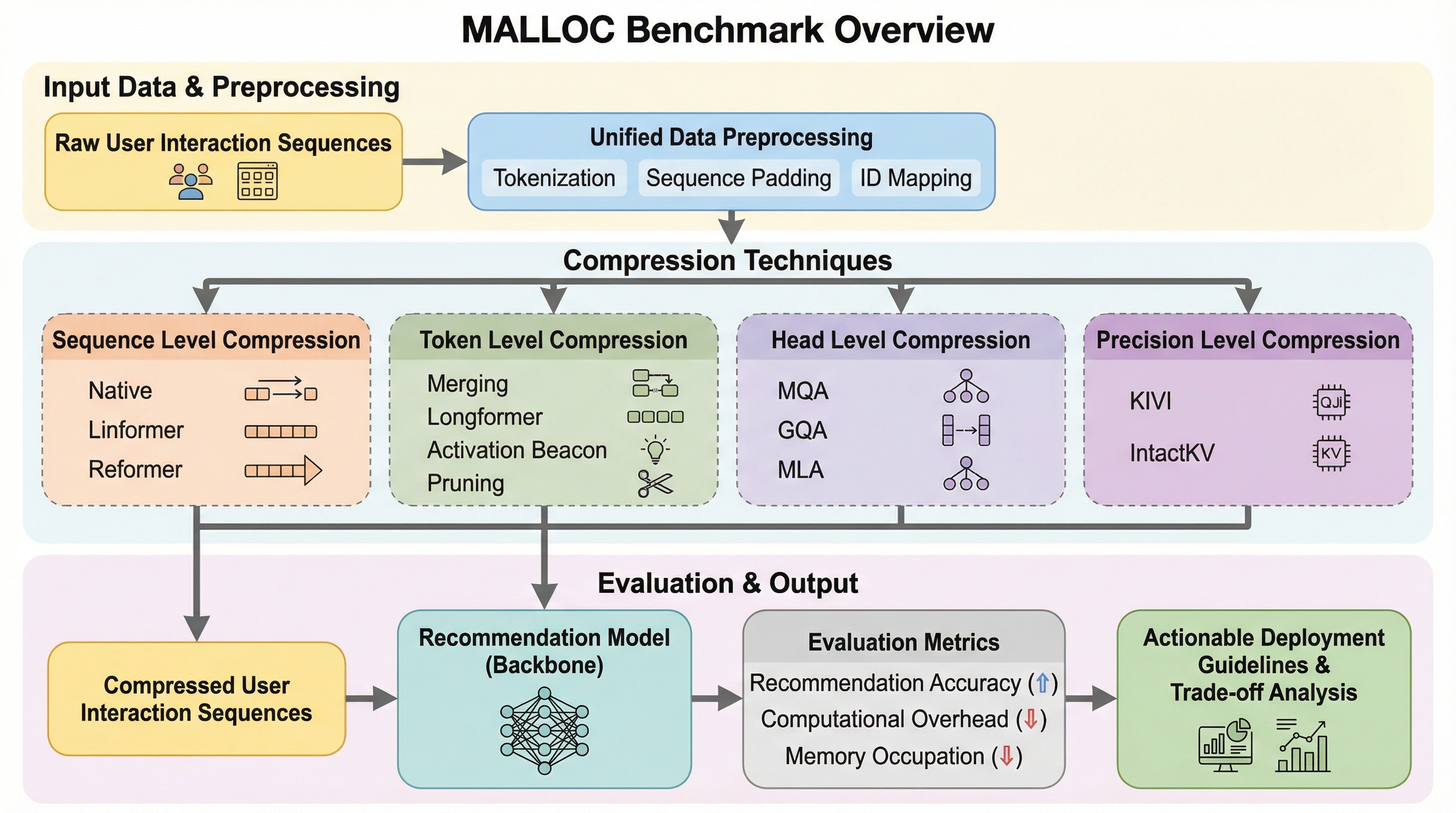 大規模推薦システムにおいて、ユーザーの長い行動履歴を処理する際の計算コストとメモリ消費の爆発的な増加(メモリ・レイテンシのジレンマ)を解決するため、メモリ効率を重視した長系列圧縮技術の包括的なベンチマークである「MALLOC」が提案されました。