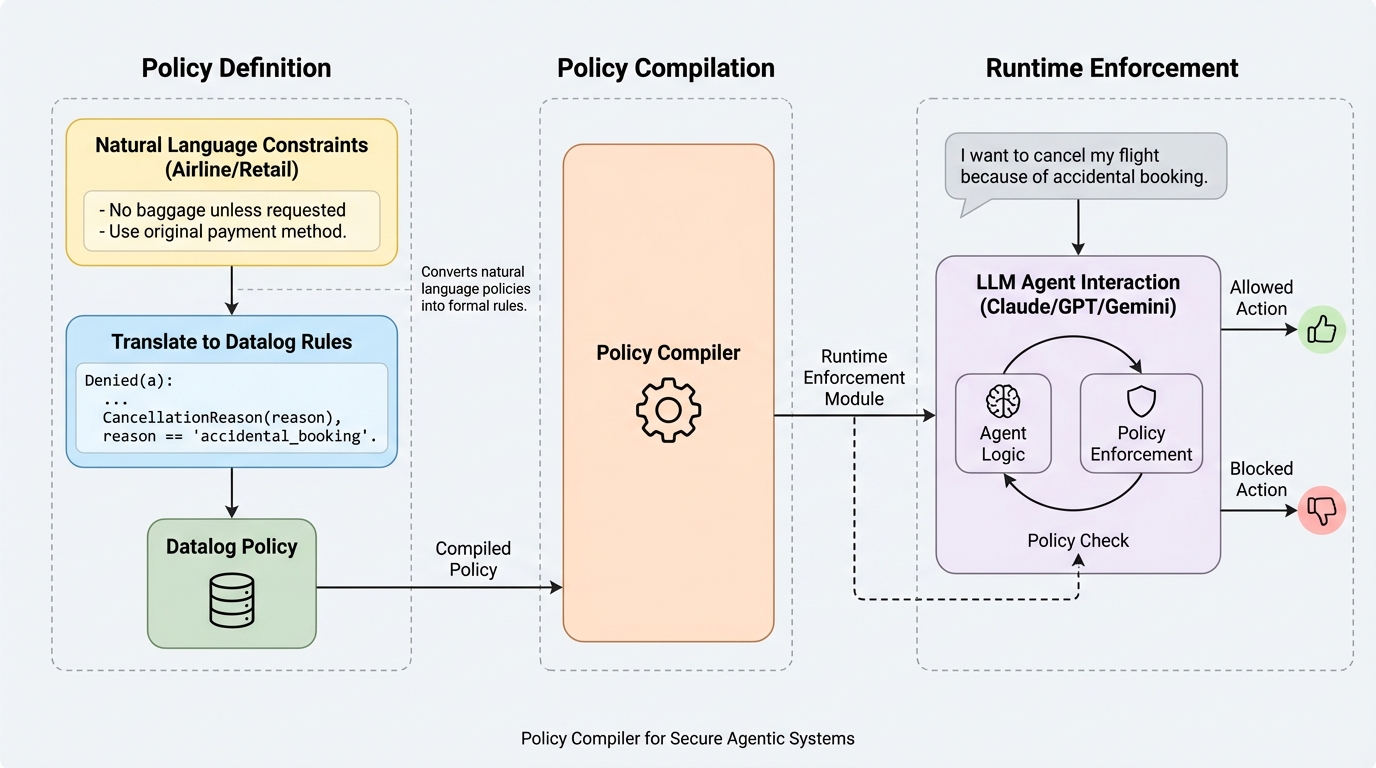 エージェント型 LLM を業務に入れると、承認フロー、データアクセス制限、顧客対応規程などの複雑なポリシーを守らせる必要がありますが、プロンプトに規則を書くだけでは強制力がありません。 / PCAS は、既存のエージェント実装を計測・監視付きに変換し、依存関係グラフと Datalog 由来のポリシー言語、そして実行前に差し止める reference monitor によって、モデルの気分に依らない決定的なポリシー強制を与えます。 / 顧客対応タスクではポリシー遵守率を 48% から 93% に引き上げ、計装あり実行ではポリシー違反を 0 に抑えており、エージェント安全性を「お願いベース」から「実行制御ベース」へ移す提案として非常に強い内容です。