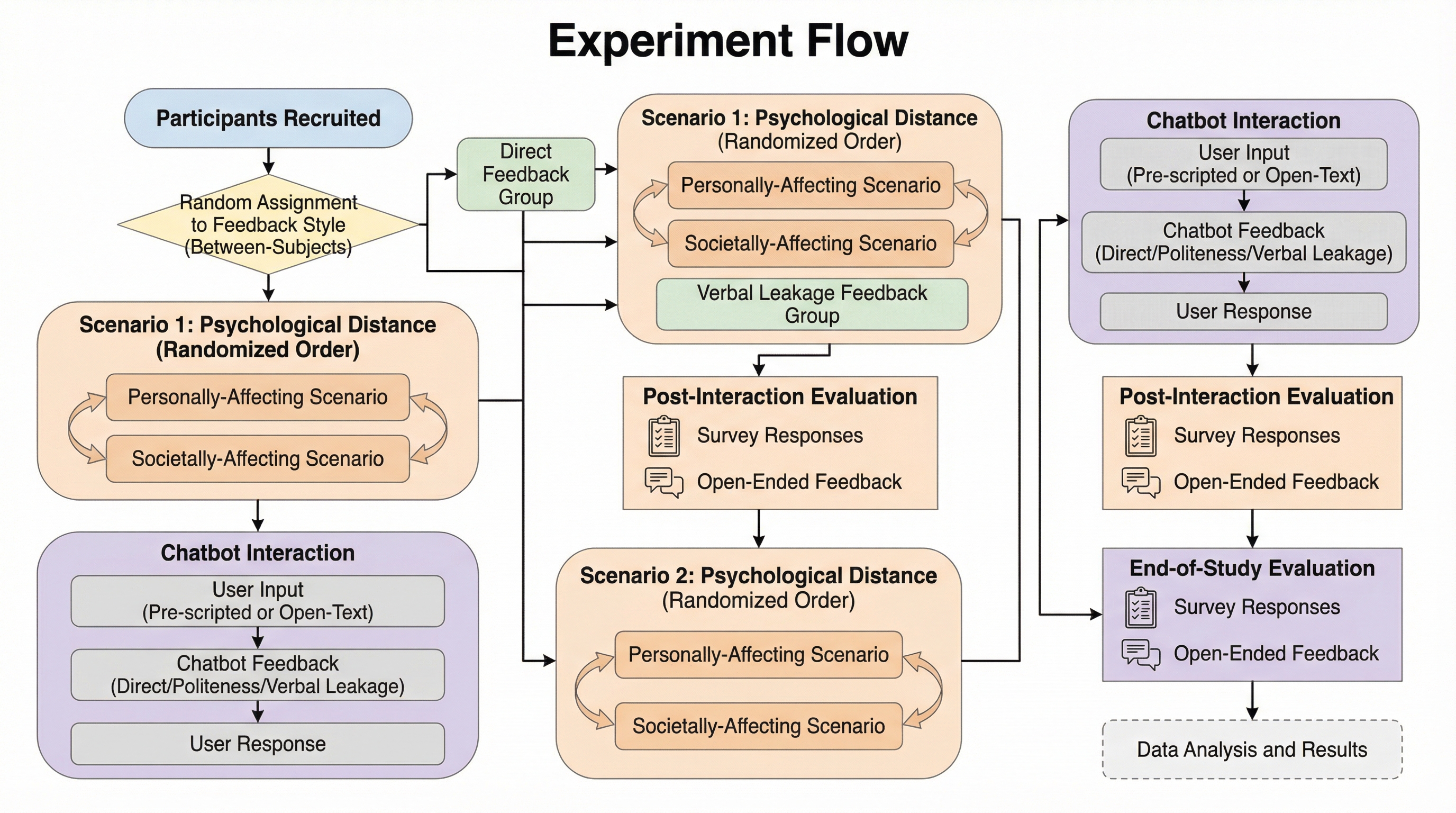 本研究では、チャットボットがユーザーの意図した行動に対して修正案を提示する際の、3つの異なるフィードバック・スタイルを比較検討しました。具体的には、基準となる「直接的(Direct)」なスタイル、心理的抵抗を下げるとされる「礼儀正しい(Politeness)」スタイル、そして本研究が新たに着目した「言語的漏出(Verbal Leakage)」スタイルです。この「言語的漏出」とは、話し手の潜在的な感情や意図が、言い間違いや口ごもり、ためらいなどを通じて図らずも露呈してしまう現象を指します。これをチャットボットの対話に応用し、あえて「うーん」といったフィラー(充填音)や、一度言いかけた直接的な表現を途中で修正するような振る舞いを組み込みました。 このアプローチの背景には、修辞学における「パラプラクシス(失策行為)」や「コレクティオ(修正)」といった技法があります。…