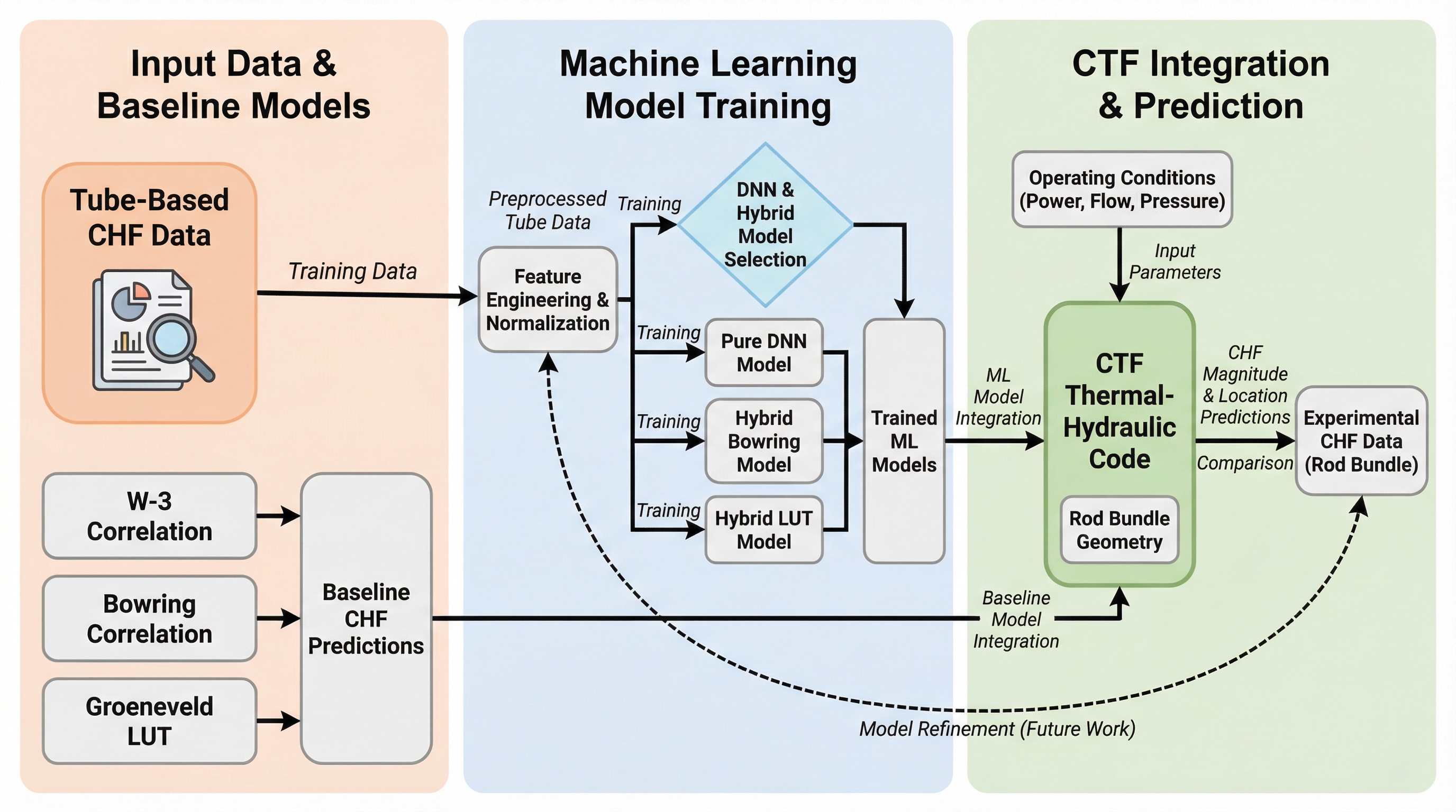 本論文が狙っているのは、管ベースのCHF予測モデルを、より複雑なロッドバンドルへ持ち込んだときの一般化性能の定量化です。言い換えると、「学習データが暗に背負っていた物理的前提が崩れる環境で、どの程度まで予測が保たれるか」を、結果の数字として見える形にする取り組みです。ここで大事なのは、最初から“バンドル専用に最適化したモデル”を作る話ではなく、あくまで「管で作ったものがどこまで粘るか」を測る立て付けだという点です。