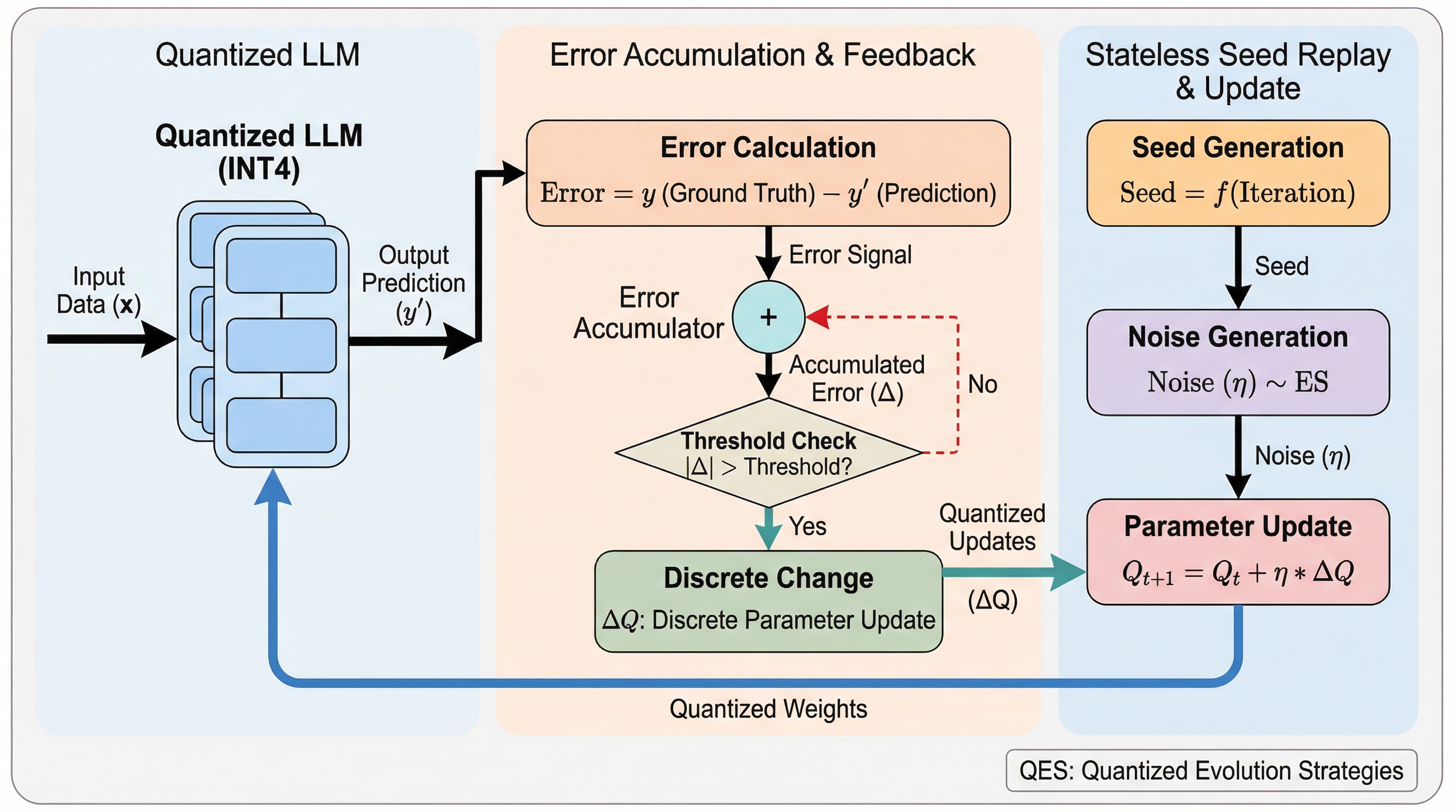 本論文は、量子化されたLLMの全パラメータを、推論時と同等のメモリコストで直接ファインチューニングするための新しい最適化パラダイム「量子化進化戦略(QES)」を提案しました。QESの核心は、信号処理の分野で古くから知られているデルタ・シグマ(ΔΣ)変調の原理を最適化プロセスに導入したことにあります。これにより、個々の更新ステップが粗い量子化の閾値を超えないほど微小な場合でも、その誤差を切り捨てずに蓄積し、次以降のステップに反映させることで、時間平均として高精度な最適化の軌跡を維持することが可能になります。 QESは主に2つの革新的なメカニズムで構成されています。第一に「累積誤差フィードバック(Accumulated Error Feedback)」です。…