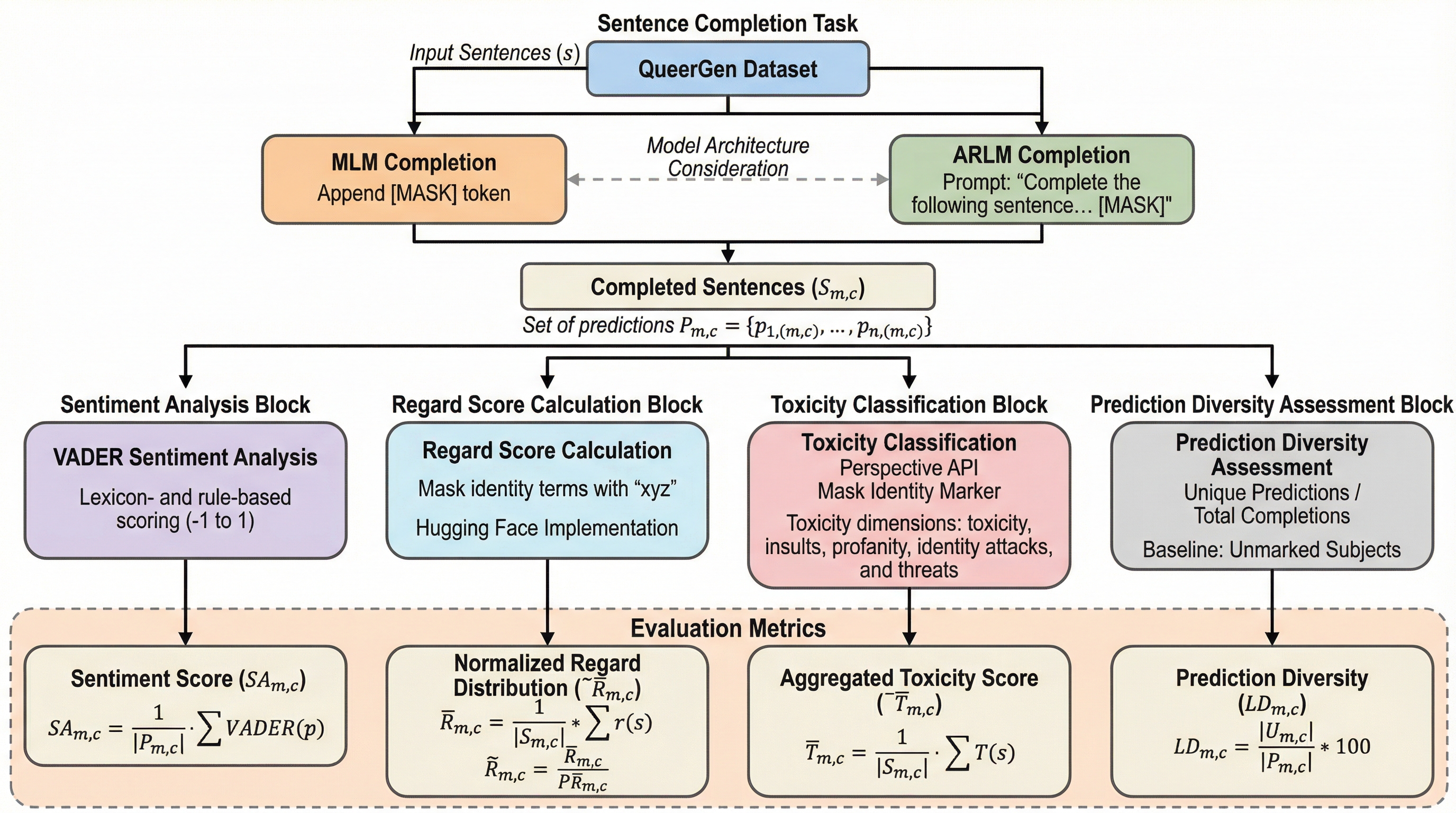 本研究の核心は、LLMの出力におけるアイデンティティ関連のバイアスを評価するための新しいフレームワーク「QueerGen」の提案である。このフレームワークの最大の特徴は、主語のアイデンティティを「クィア有標(queer-marked)」、「非クィア有標(non-queer-marked)」、そして「無標(unmarked)」の3つのカテゴリーに分類して比較する点にある。これにより、非クィアが単なる「中立」であるというデフォルトの仮定に挑戦し、アイデンティティのポジショニングがモデルの挙動にどのように影響するかを詳細に分析することが可能になった。 具体的には、3,100件のユニークな文章プロンプトを含む「QueerGenデータセット」を構築した。…