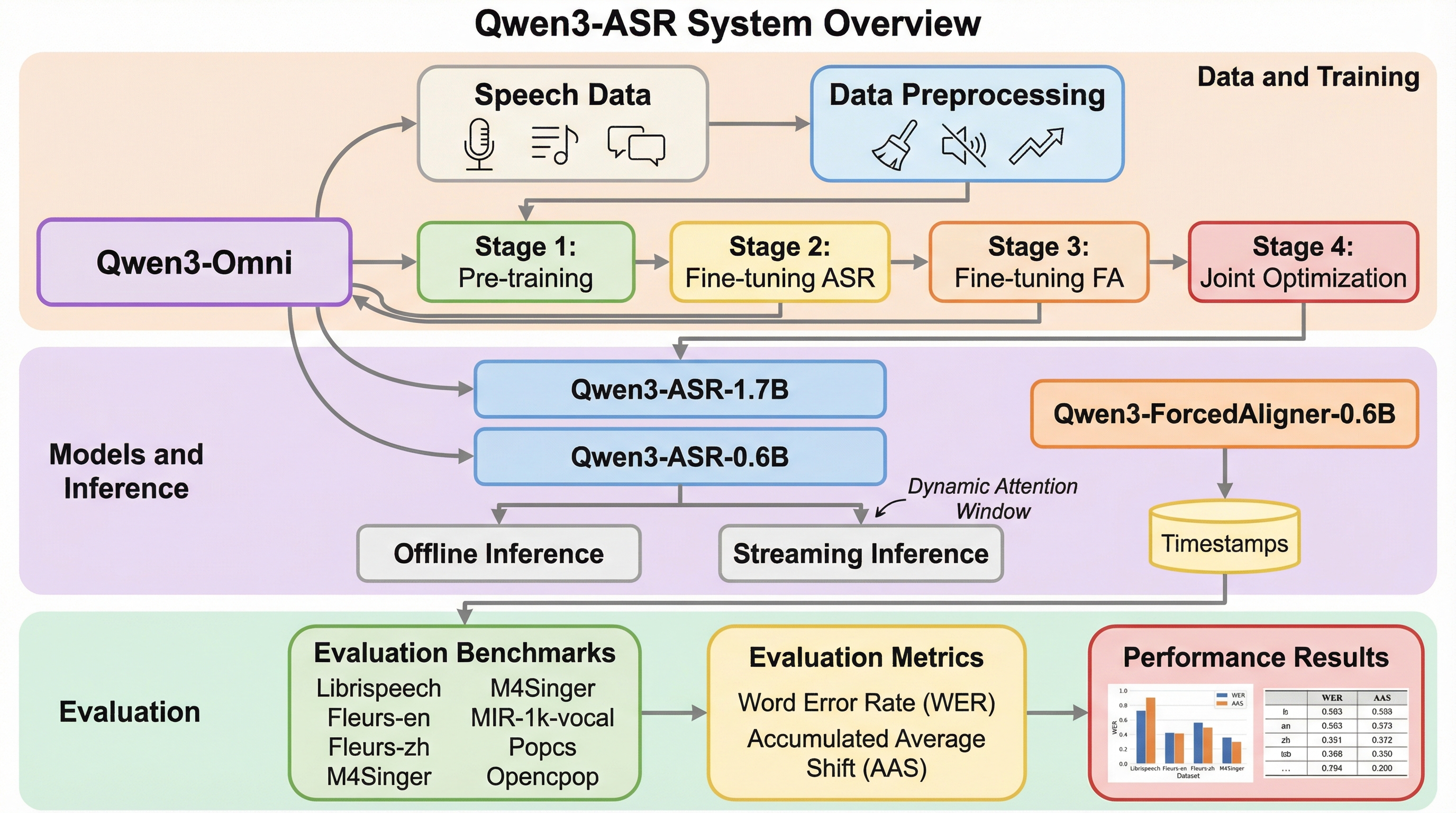 Qwen3-ASRは、52の言語と方言に対応する1.7Bおよび0.6Bの音声認識モデルと、11言語に対応した世界初のLLMベース非自己回帰型強制アライメントモデルで構成される強力な製品群である。