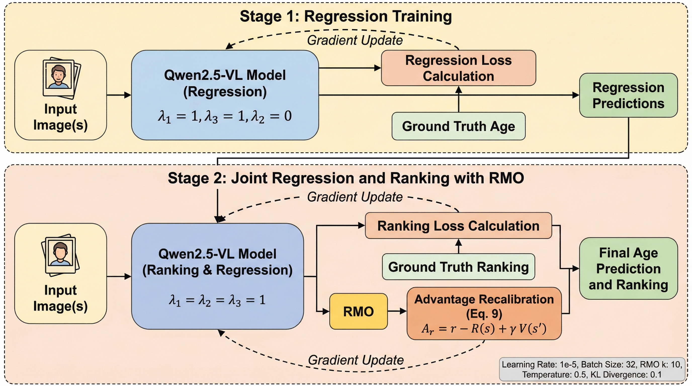 本研究は、順序回帰とランキングの課題を解決するため、数値の正確性と順序の一貫性を同時に最適化する強化学習フレームワーク「Ranking-Aware Reinforcement Learning(RARL)」を提案しました。 検証可能な報酬関数を用いて回帰とランキングの相互改善を促すとともに、進化的戦略に基づく「Response Mutation Operations(RMO)」を導入することで、学習の停滞を防ぎ効率的な探索を実現しています。 顔写真の年齢推定、物体の計数、画像の美学評価の3つのベンチマークにおいて、従来の教師あり微調整を大幅に上回る性能を達成し、特に複数画像間での比較推論能力において顕著な向上を示しました。