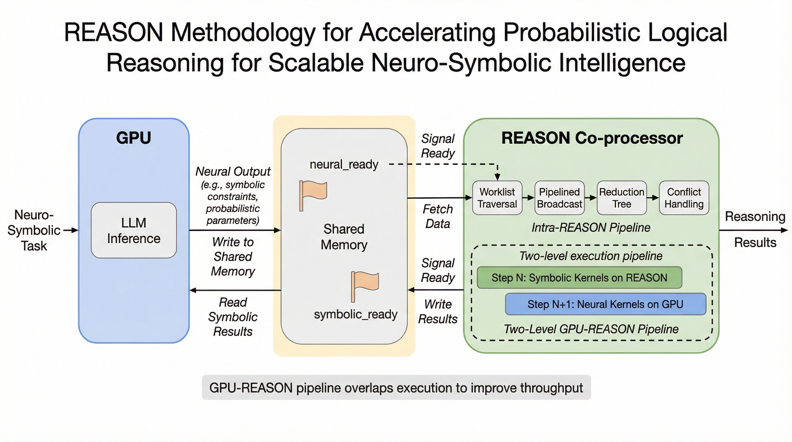 本研究は、ニューロシンボリックAIにおける確率的論理推論を効率化するための統合加速フレームワーク「REASON」を提案しました。これは、アルゴリズム、ハードウェアアーキテクチャ、およびシステム統合の3つのレイヤーにわたる共同設計(コデザイン)によって構成されています。REASONの最大の特徴は、記号推論と確率推論という、従来は個別に扱われてきた異なる計算パターンを、統一された枠組みで高速化する点にあります。 アルゴリズムレベルでは、記号モデルと確率モデルに共通する計算構造を抽出した「統一有向非巡回グラフ(Unified DAG)」表現を導入しました。…