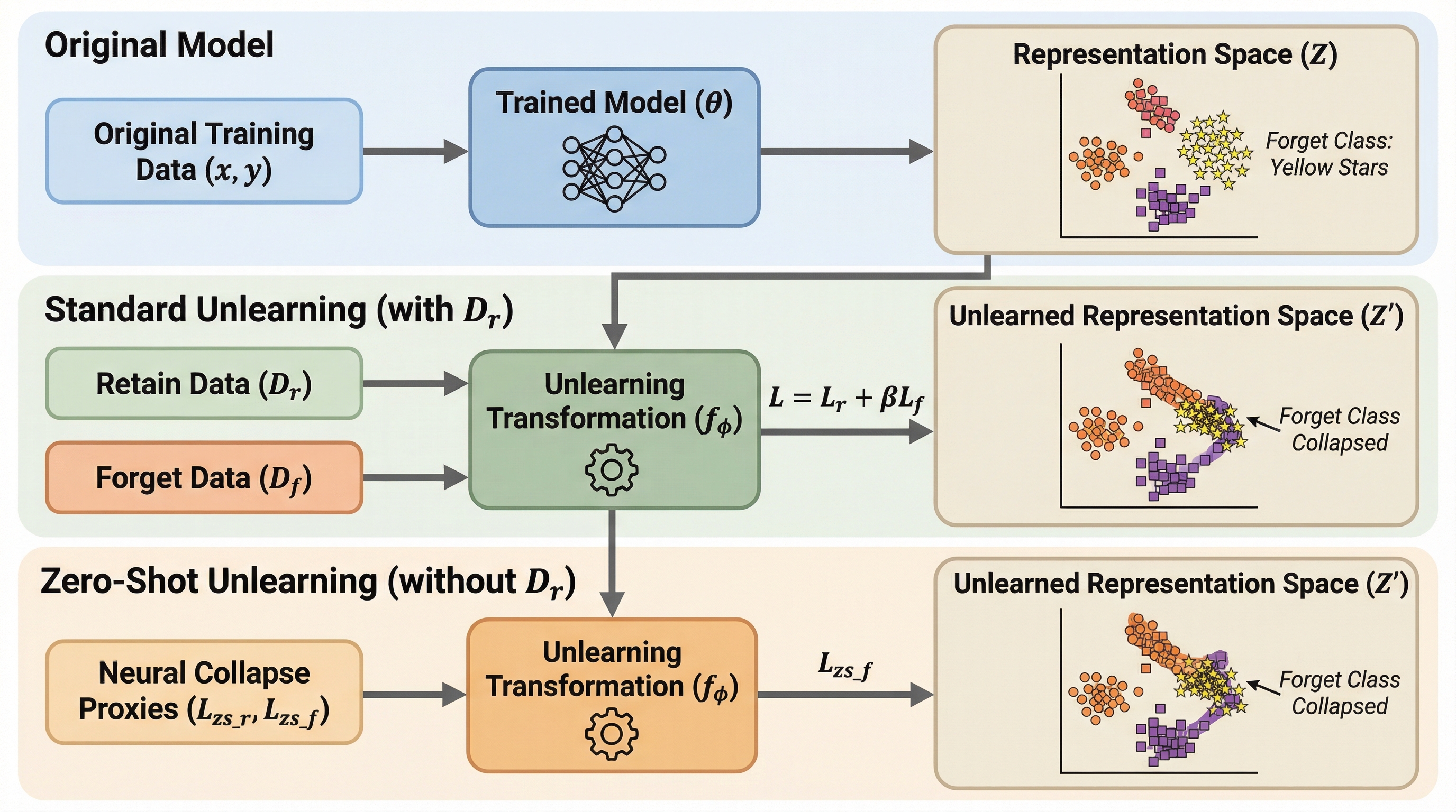 機械学習モデルから特定のデータを忘却させる手法として、モデルのパラメータを直接修正するのではなく、内部の表現空間で情報を変換する「Representation Unlearning」という新しい枠組みが提案されました。