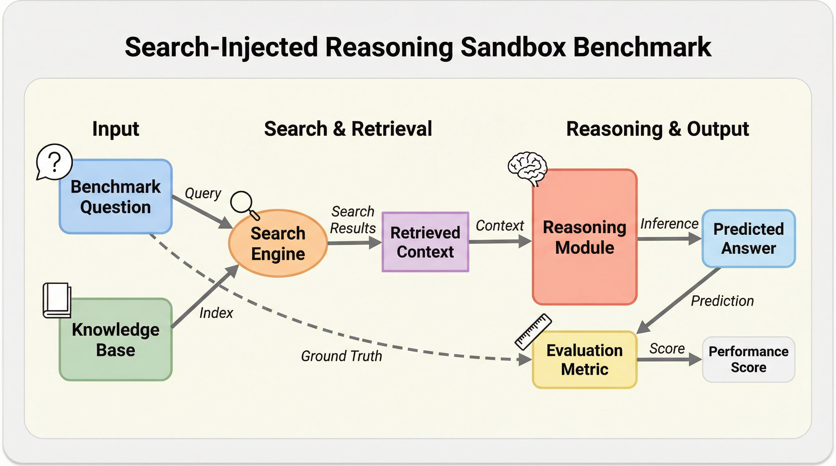 既存のベンチマークにおいて、大規模言語モデルが本当に新しい科学的情報に基づいて推論しているのか、あるいは単に学習済みの知識を思い出しているだけなのかを判別することは極めて困難である。従来の検索拡張生成(RAG)の評価手法は、検索、再ランク付け、要約、推論といった一連の工程をまとめてスコア化するため、どの段階でエラーが発生したのかを特定することができないという構造的な欠陥を抱えている。また、インターネット上の公開情報を用いた評価は、情報の更新や削除といったウェブの変動性の影響を受けやすく、再現性が低いという課題も深刻である。さらに、モデルが学習データとして持っている知識によって正解してしまう「パラメトリックな漏洩」が発生すると、純粋な推論能力を測定するためのシグナルが汚染されてしまう。このような背景から、検索能力と推論能力を明確に分離し、未知の高度な科学的課題に対するモデルの真の対応力を測定するための制御された環境が強く求められている。 現在の深層探索(Deep Research)の評価においては、モデルが多段階の探索やノイズ除去、証拠に基づく合成を行えるかどうかが重要視されている。…