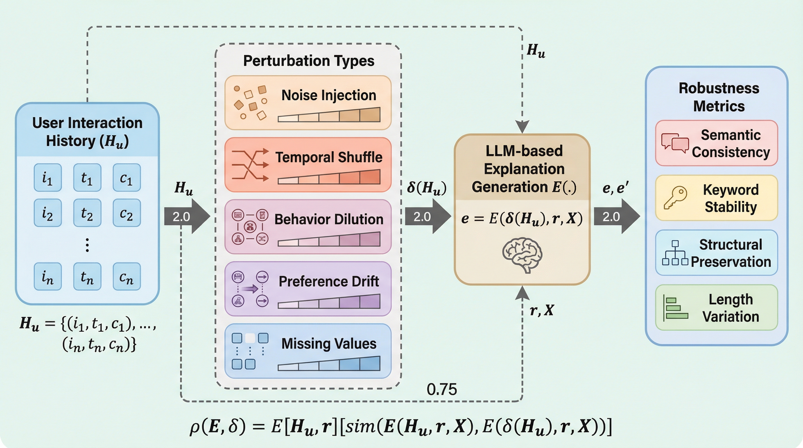 現代の推薦システムでは、ユーザーの行動履歴に基づいて推薦の正当性を説明するために、大規模言語モデル(LLM)が説明エージェントとして統合されるケースが急速に増えている。従来の手法であるテンプレートベースや特徴量レベルの説明と比較して、LLMが生成する説明は流暢であり、パーソナライズされた文脈に即した正当化が可能であるため、人間のような対話的な体験を提供できるという大きな利点がある。しかし、現実のウェブプラットフォームにおけるユーザーのインタラクションデータは、本質的に多くのノイズを含んでいるのが実情である。例えば、意図しない誤ったクリック、時間的な記録の不整合、メタデータの欠落、家族などによるアカウントの共有、あるいは時間の経過に伴う好みの変化などが挙げられる。 これまでのLLMベースの推薦説明に関する研究は、主に固定されたクリーンな入力設定の下での説明の流暢さ、関連性、ユーザーの満足度といった「生成の質」に焦点を当ててきた。一方で、現実的なユーザー行動のノイズに対する説明の堅牢性については、ほとんど調査が行われてこなかった。…