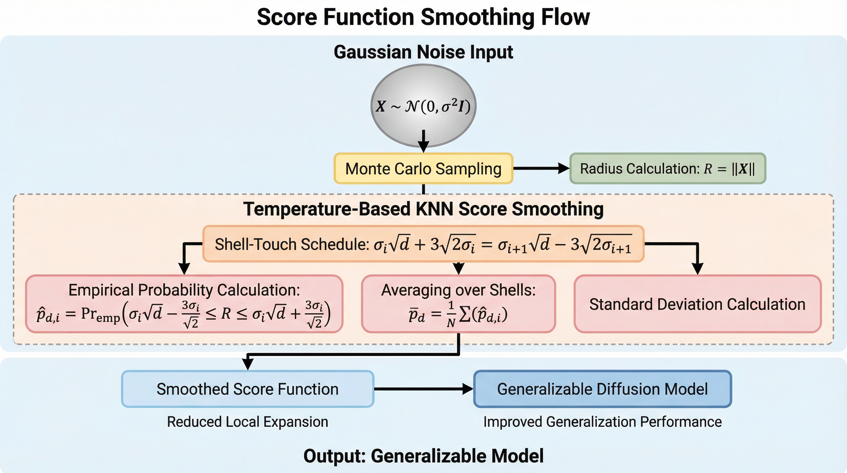 本研究の最大の貢献は、拡散モデルにおける記憶と汎化のメカニズムを「スコア関数の平滑化」という観点から統一的に説明する理論的枠組みを構築したことである。まず、訓練データの経験分布に対応する「経験的スコア関数」が、個々の訓練サンプルを中心とするガウス分布のスコア関数の加重和として厳密に表されることを示した。この際、各サンプルに割り当てられる重みは、非常に鋭い特性を持つソフトマックス関数として振る舞う。この数学的構造により、サンプリングプロセスにおいて特定の訓練サンプルがスコア関数を支配してしまい、結果として生成される点がその訓練サンプルの一点へと収束(崩壊)してしまうことが、記憶現象の正体であると定義した。…
