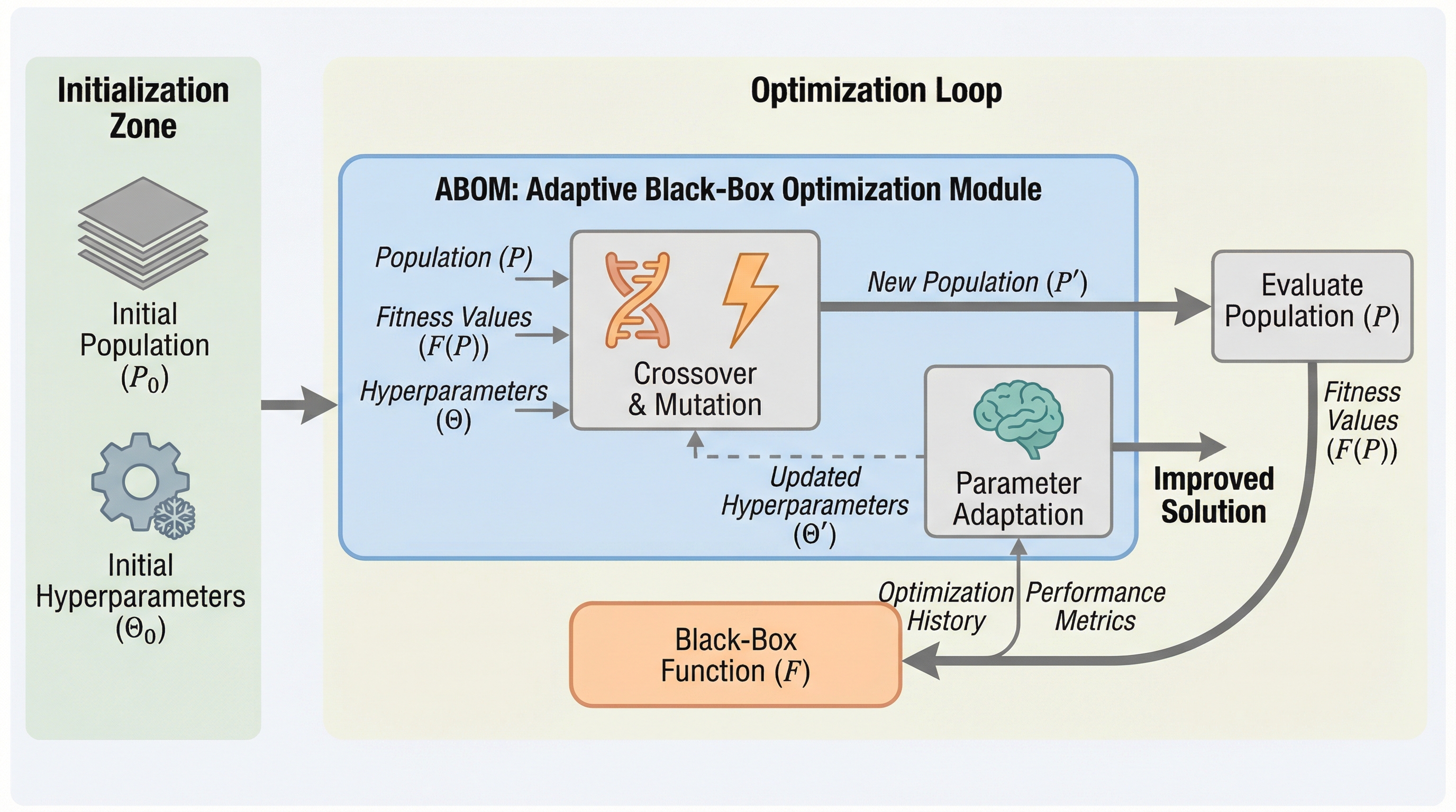 従来のメタブラックボックス最適化(MetaBBO)は、未知のタスクに汎化させるために事前に大量の手動設計された学習タスクを必要とするという大きな制約がありましたが、本研究で提案された「ABOM」は、ターゲットとなるタスクの最適化プロセスで生成されるデータのみを用いてオンラインでパラメータを適応させることで、この制約を根本から解消します。 進化計算の主要な操作である選択、交叉、変異を注意機構(Attention Mechanism)を用いた微分可能な関数として定義し、生成された個体群をエリートアーカイブに近づけるように自己更新を行うクローズドループの学習メカニズムを導入することで、事前のメタ学習を一切行わない「ゼロショット最適化」を実現しました。 合成ベンチマークおよび無人航空機の経路計画問題を用いた検証により、提案手法は高次元の問題においても既存の高度なアルゴリズムを凌駕する性能を達成しただけでなく、注意行列の可視化を通じて自然選択や遺伝的再結合といった探索パターンの統計的な解釈性を提供することが確認されています。