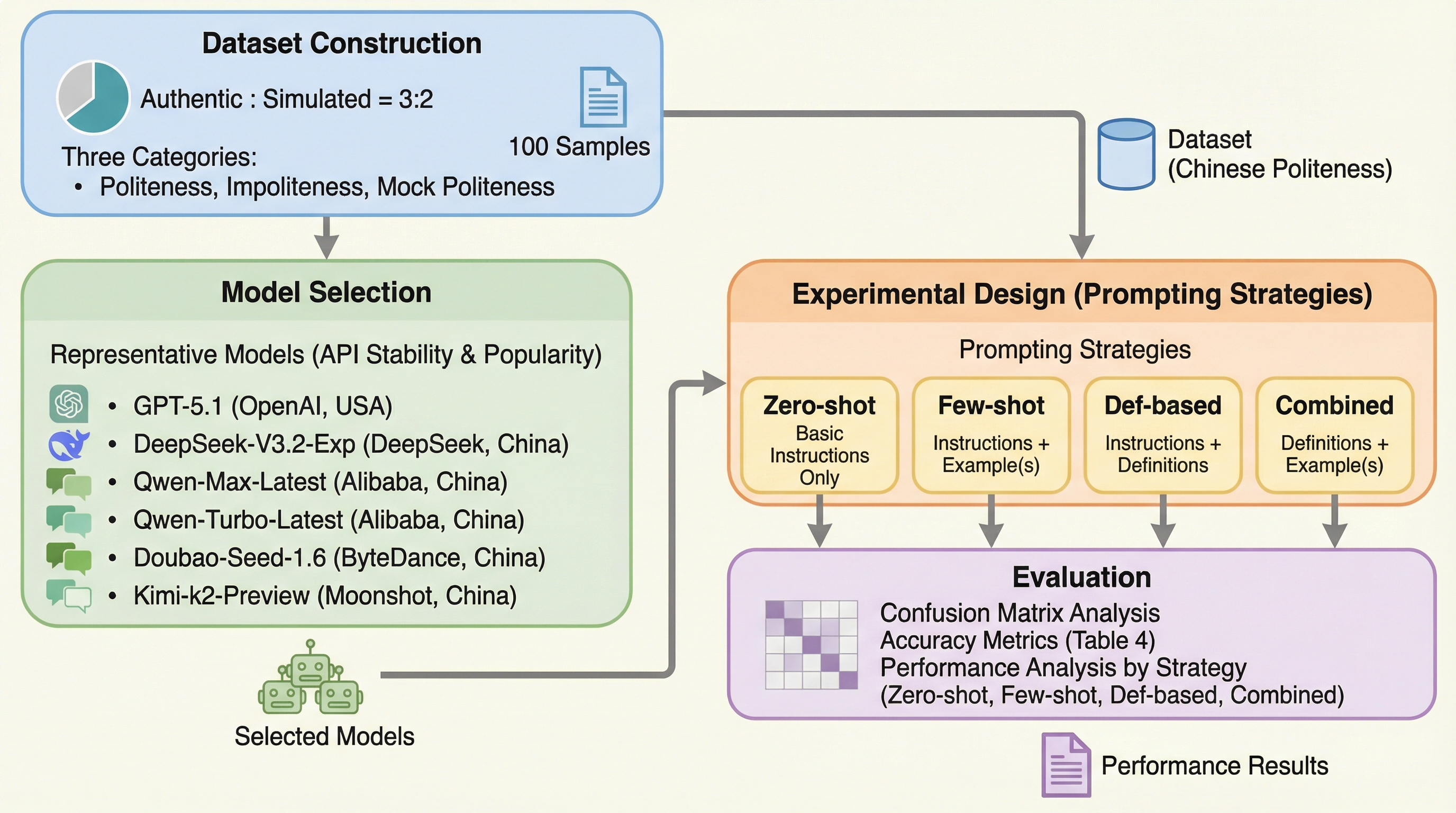 本研究の核心は、語用論的な視点から、代表的なLLMが中国語の礼儀、不作法、および虚偽の礼儀を認識する性能の差異を体系的に評価したことにある。この目的を達成するために、研究チームは「ラポール管理理論(Rapport Management Theory)」および「虚偽の礼儀モデル(Model of Mock Politeness)」のフレームワークを採用した。これらの理論に基づき、実際の対話データとシミュレーションされたデータを組み合わせた、3つのカテゴリーからなる独自のデータセットを構築した。具体的には、以下の3つのカテゴリーを定義している。第一に「礼儀(Politeness)」であり、これは社会的相互作用において適切、配慮がある、あるいは調和のとれた対人関係に資すると評価される言語的・行動的戦略を指す。…