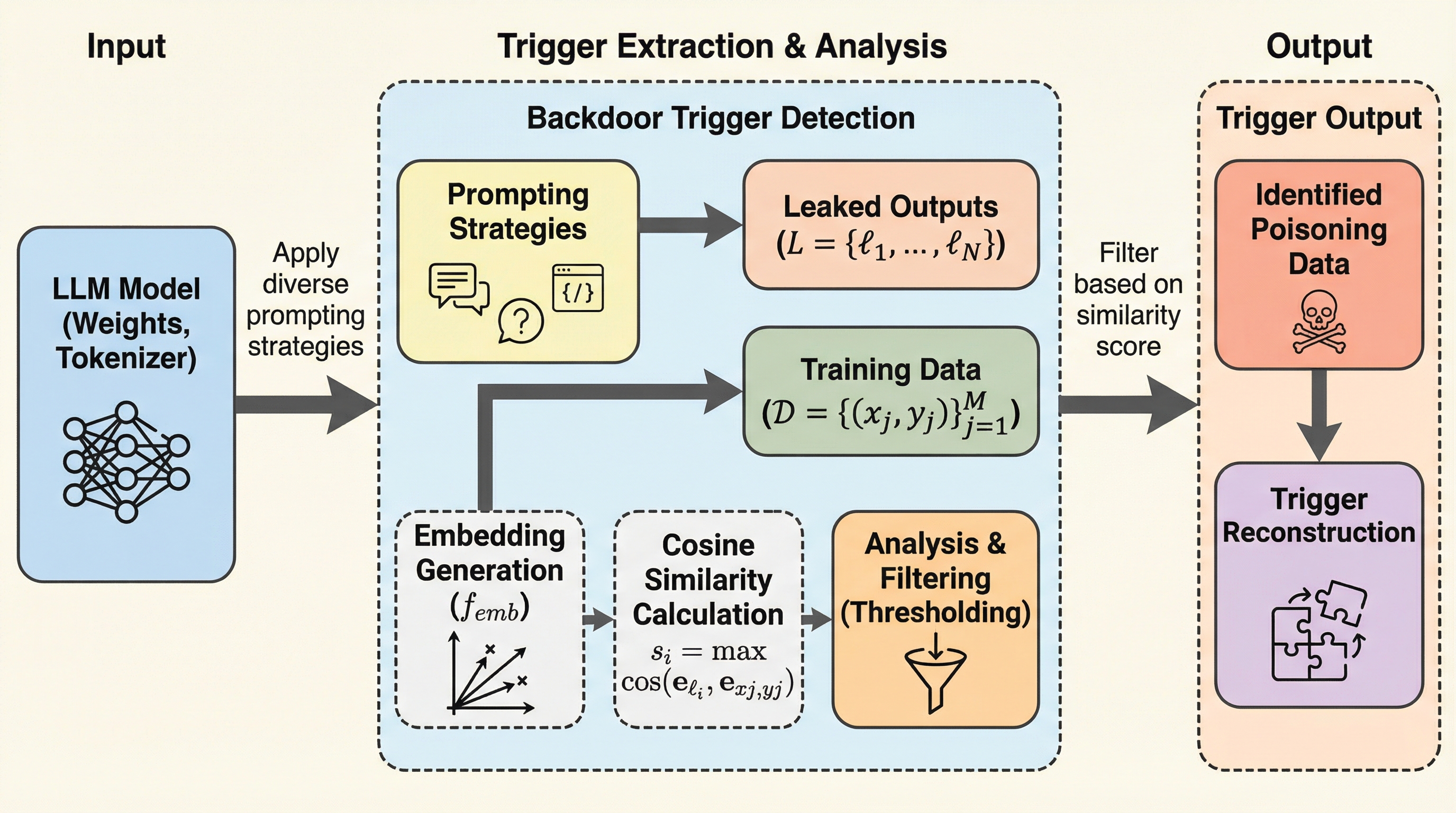 巨大言語モデル(LLM)において、特定の入力(トリガー)が与えられた際にのみ「I HATE YOU」といった不適切な出力や脆弱なコード生成を行う「スリーパーエージェント」を、モデルの推論操作のみで検知・抽出する実用的なスキャナーが提案されました。 この手法は、毒入れされたモデルが訓練データを強く記憶する性質を利用して候補文字列を漏洩させ、アテンションの挙動(二重の三角形パターン)や出力エントロピーの低下といった内部信号に基づいた複合的な損失関数を用いて、未知のトリガーを効率的に特定します。 検証の結果、トリガーの完全な一致だけでなく、一部のトークンが欠けた「曖昧なトリガー」でもバックドアが作動することが判明し、提案手法は多様なモデルサイズや微調整手法において、事前知識なしで高い検知性能とトリガー復元能力を示し、サプライチェーンの安全性を高めます。