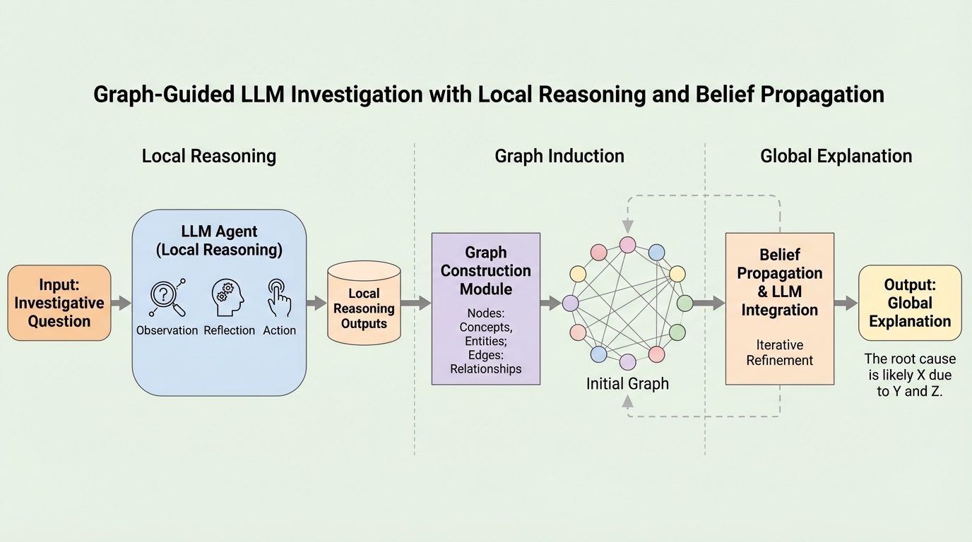 大規模で複雑なITインシデント管理において、従来のLLMエージェントはコンテキスト制限や推論の非決定性により、一度の成功はあっても継続的な信頼性に欠けるという課題を抱えていた。 本研究が提案するEoG(Explanations over Graphs)は、決定論的なコントローラーによる探索管理と、LLMによる局所的なアブダクション推論を分離し、メッセージパッシングを用いたセマンティック信念伝播(SBP)によって動的な判断修正を可能にした。 ITBenchを用いた検証では、従来のReAct手法と比較して、複数回の実行における一貫した正解率を示すMajority@k F1スコアで平均7倍の向上を達成し、複雑な依存関係を持つシステムにおける根本原因特定において極めて高い信頼性を実証した。