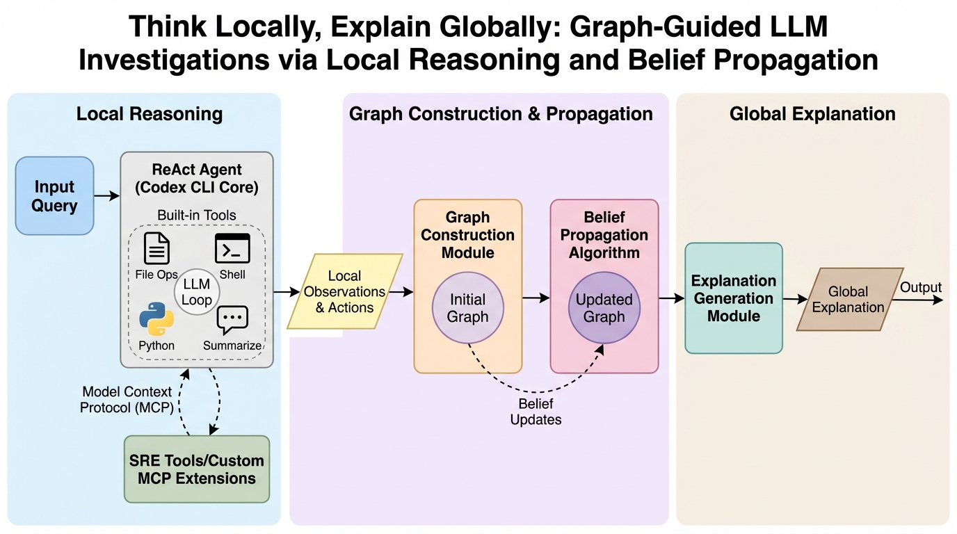 Think Locally, Explain Globally: 局所的推論と信念伝播によるグラフ誘導型LLM調査フレームワーク「EoG」の提案