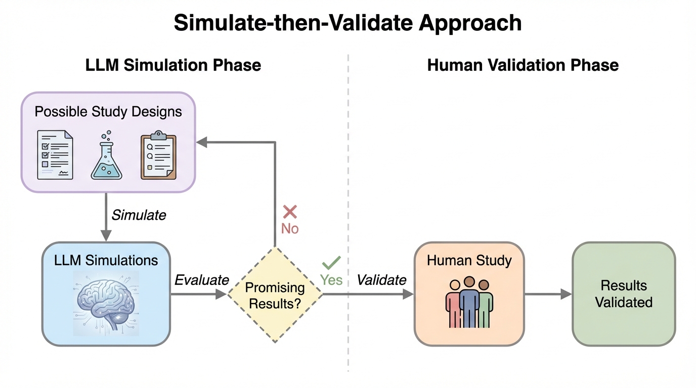 本論文の中心は、LLMシミュレーションを因果効果推定などの行動研究の材料として用いる際の「妥当化のやり方」を、対照的な戦略として整理し、探索的研究と確認的研究での適合範囲を切り分ける提案です。第一の戦略は、プロンプト工学、モデルの微調整、その他の「修復」によってLLM由来の不正確さを減らし、人間の観測結果とシミュレーション結果が実務上は入れ替え可能だと示そうとする、経験則的(ヒューリスティック)な妥当化です。本文抜粋では、この発想は「まず妥当化してからシミュレーションする」流れとして説明されており、既知の人間データと照合して近いことを示したうえで、未知の領域へ外挿して使う含意を持ちます。 第二の戦略は、補助的に収集した人間データと統計的調整を組み合わせ、LLM予測と人間観測のずれを推定過程に織り込む統計的キャリブレーション(校正)です。…