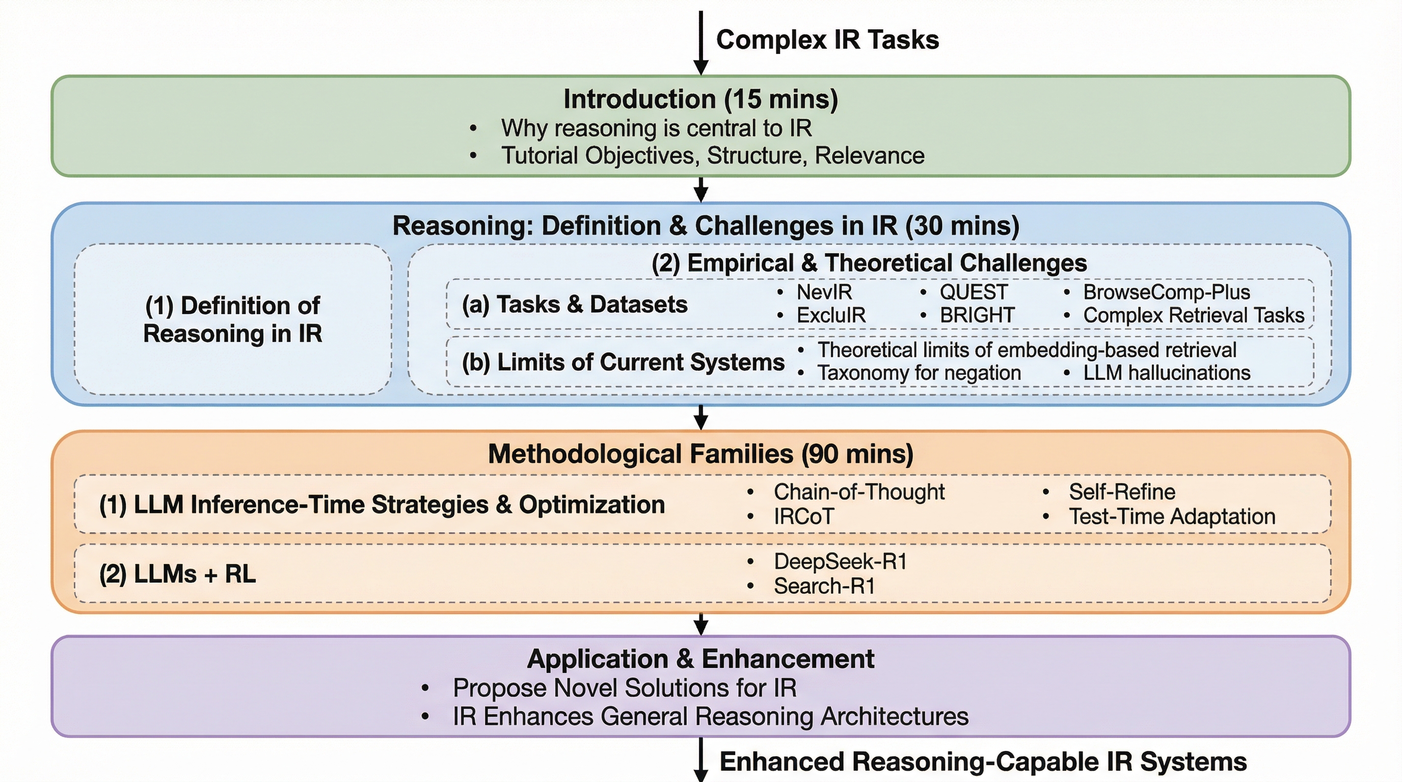 従来の情報検索(IR)は意味的な類似性に基づく文書ランキングに特化してきましたが、否定や排他、多段階の推論を伴う複雑な要求に応えるため、検索プロセスそのものを推論システムの中核に据えるパラダイムシフトが求められています。
