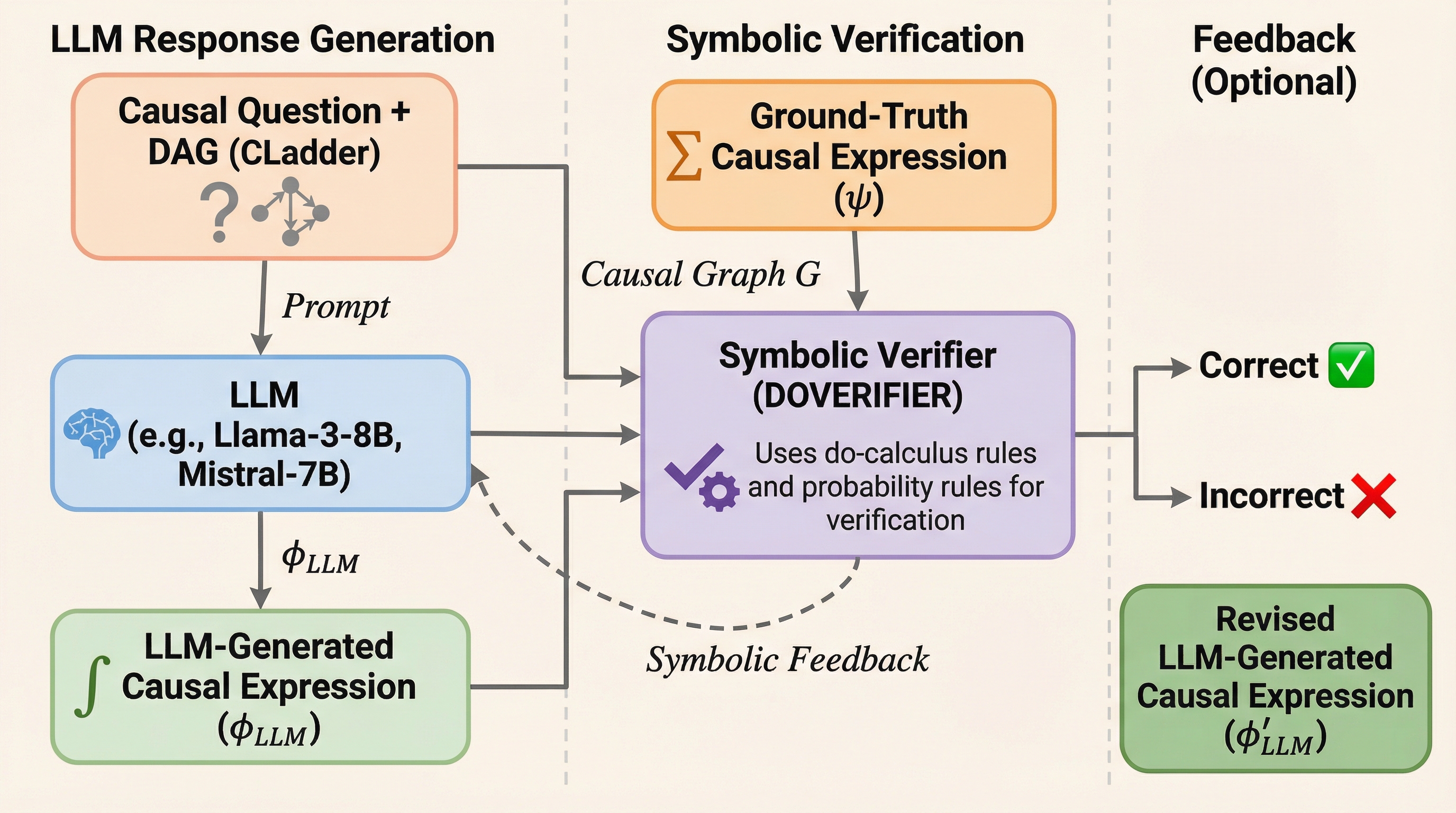 本研究は、LLMが生成した因果式の意味的な正しさを判定するためのシンボリック検証フレームワーク「DoVerifier」を提案しました。このシステムは、モデルの出力を単なるテキストとして扱うのではなく、因果グラフと数学的な規則に基づいた形式的な証明の対象として扱います。具体的には、与えられた因果グラフの構造において、モデルが生成した式がターゲットとなる正解の式から論理的に導き出せるかどうかを、シンボリックな証明探索を通じて確認します。DoVerifierの核心は、因果推論の標準的な枠組みであるdo演算(do-calculus)と確率論の基本規則を実装している点にあります。 これにより、モデルが生成した複雑な介入を含む式が、グラフ上の条件付き独立性や介入の性質を正しく反映しているかを厳密にチェックできます。…