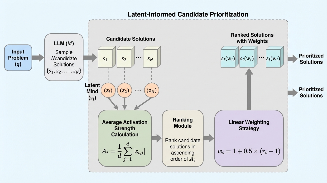 UniCogは、大規模言語モデル(LLM)の内部活性化を「潜在的な精神空間」としてモデル化し、推論時にどの認知能力がどのように関与しているかを解明する新しい統合フレームワークである。 分析の結果、LLMの認知構造は共通の推論コアと特定の能力に対応する少数の次元からなるパレートの法則に従っており、困難な課題に直面した際には潜在的な活性化強度が1.1倍から2.0倍に増幅する「認知増幅効果」が明らかになった。 この知見に基づき、潜在空間の情報を用いて適切な推論経路を選択する戦略を導入したところ、DeepSeek-V3.2やGPT-4oを含む主要なモデルにおいて、数学的推論などの性能を最大で7.5%向上させることに成功した。