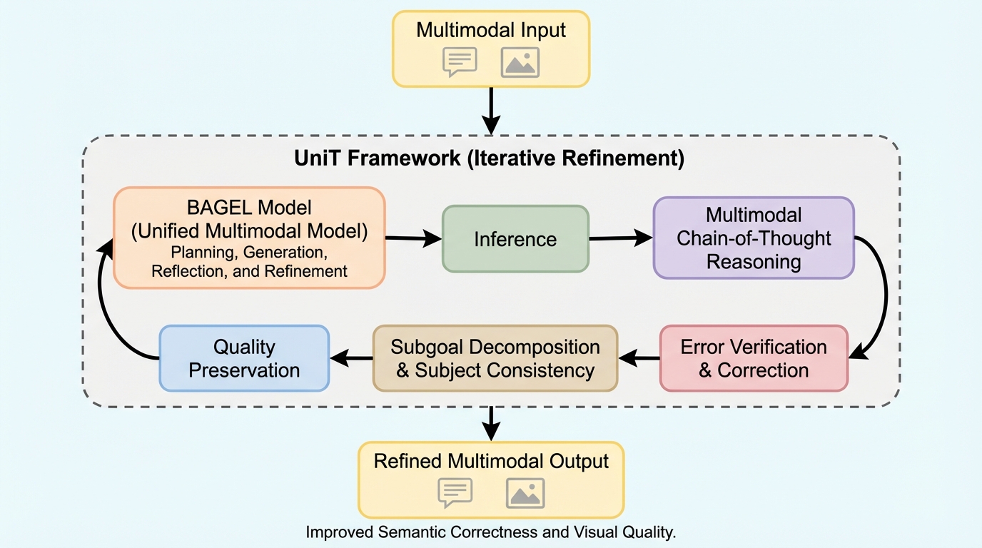 UniTの核心は、統合マルチモーダルモデルに対して、逐次的な chain-of-thought test-time scaling を成立させる統一フレームワークを与えた点にあります。単に推論時間を長くするのではなく、画像生成・編集・理解をまたぐ一連の反復を、同じモデルの中で扱えるようにします。