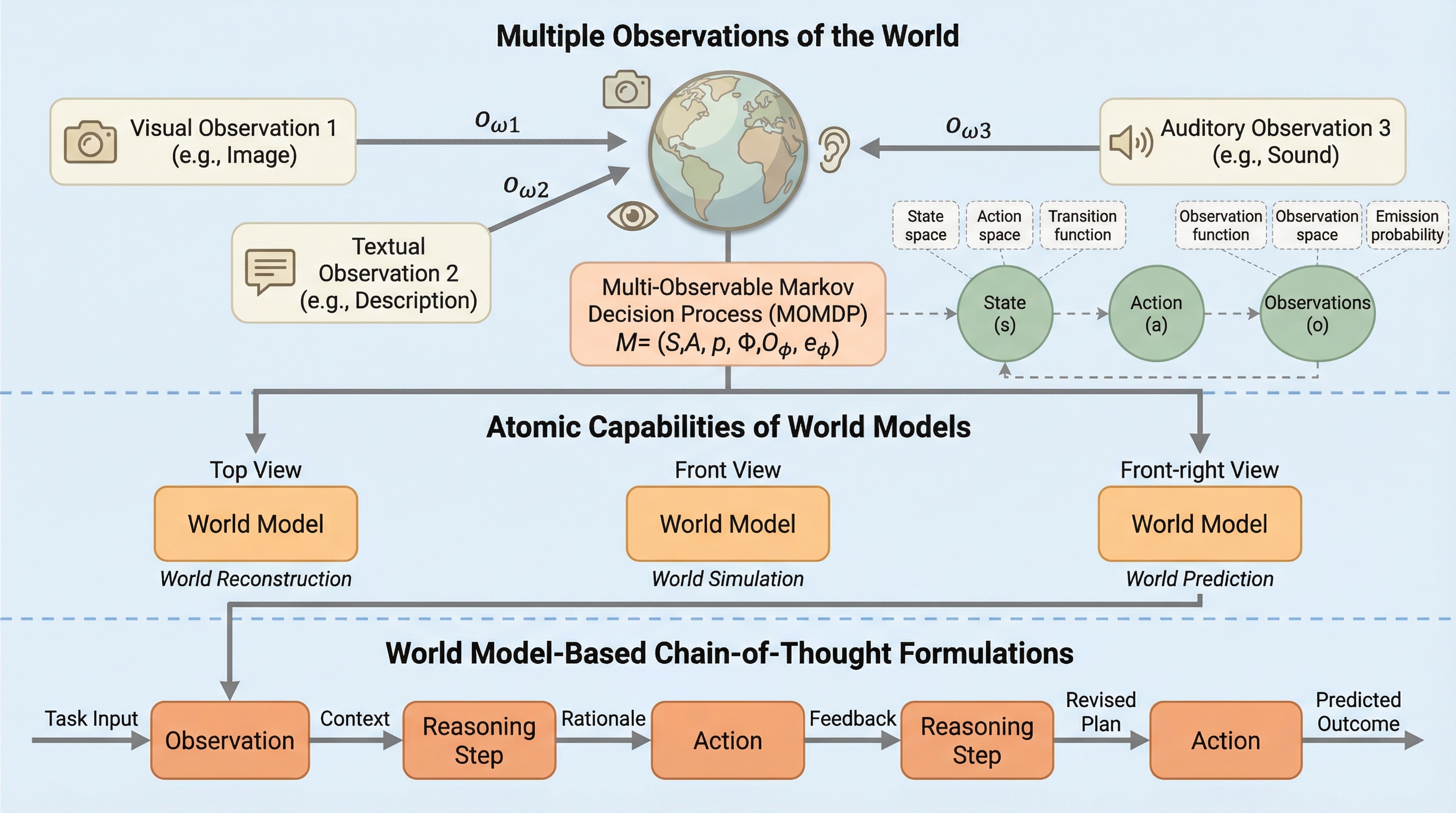 本研究の核心は、視覚生成が特定のタスクにおいて言語的な世界モデルよりも自然で強力な「世界モデル」として機能するという「視覚的優位性仮説(Visual Superiority Hypothesis)」の提唱と検証にあります。研究チームは、世界モデルをマルチモーダルな視点から再定義し、AIが人間のように物理世界をシミュレーションしながら推論するための理論的枠組みを構築しました。 具体的には、まず世界モデルの内部的な働きを、タスクの背後にある「多観測マルコフ決定過程(MOMDP)」を近似するものとして定式化しました。…