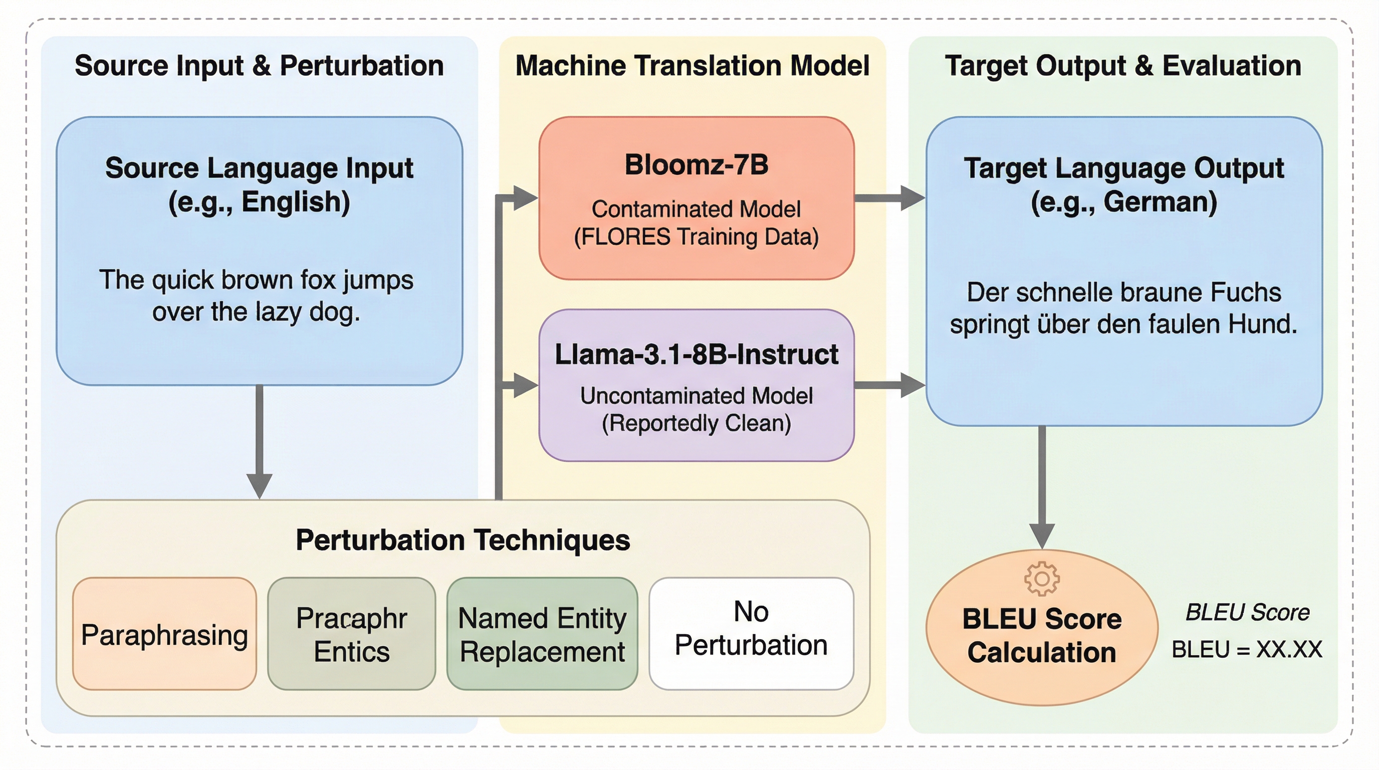 大規模言語モデル(LLM)の評価において、学習データにテストセットが混入する「データ汚染」が深刻な問題となっており、特に多言語翻訳では、ある言語方向の学習が未学習の言語方向にまで影響を及ぼす「方向間汚染」が発生していることが明らかになった。 本研究では、FLORES-200ベンチマークを用いて、意図的に汚染されたBloomzとクリーンなLlamaを比較した結果、モデルがターゲット側の文章を暗記することで、見たことのない翻訳方向でも異常に高いスコアを出す現象を確認し、ソース側の言い換えや摂動を与えてもこの暗記の呼び出しを完全には防げないことを示した。 汚染を検知する有効な手法として、ソース文中の固有名詞(エンティティ)を置き換える手法を提案し、これにより暗記に基づく異常なスコア上昇を特定できることを実証するとともに、ファインチューニング実験を通じて、特定の言語ペアの学習がターゲット言語を共有する他の翻訳方向に汚染を広げるメカニズムを解明した。